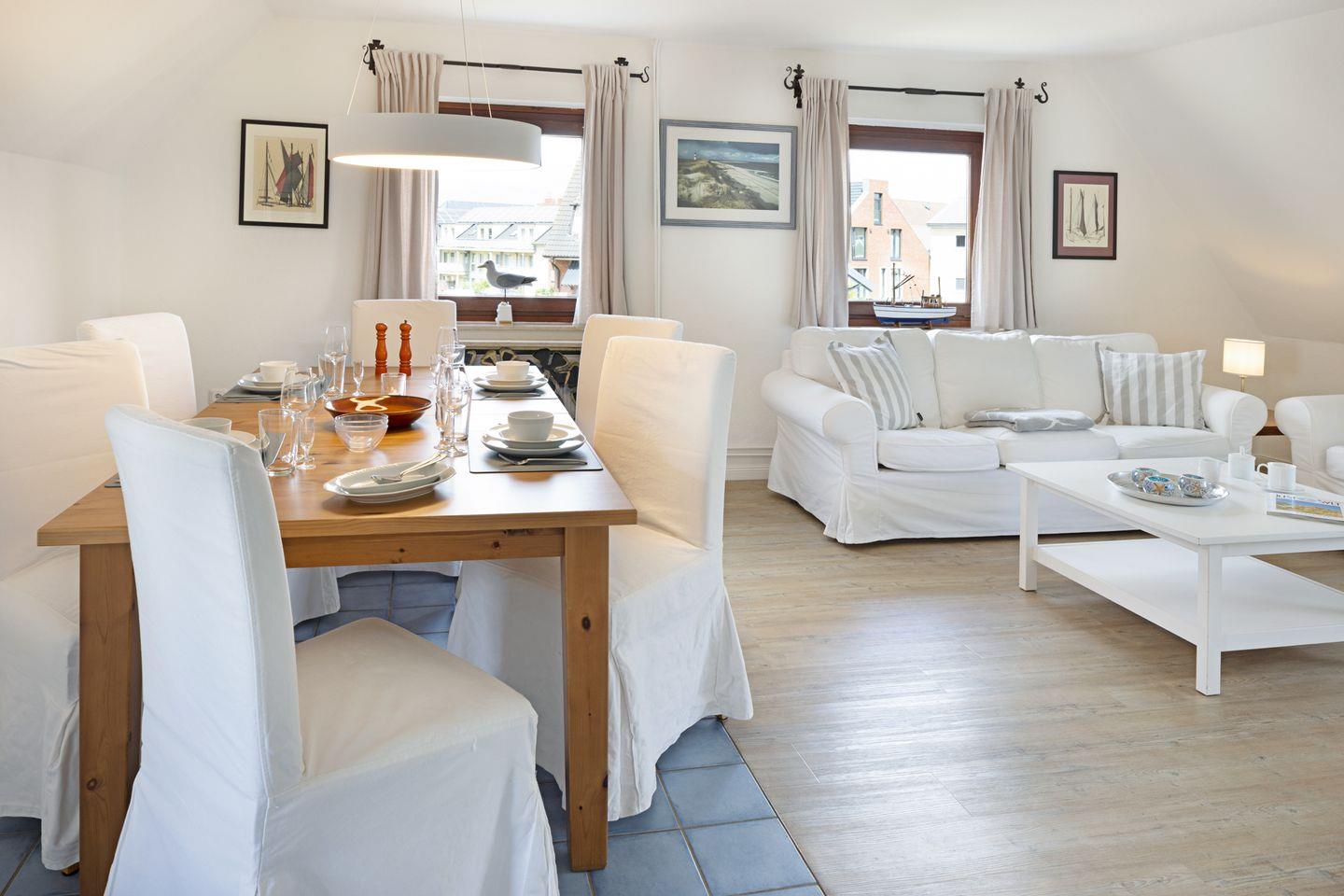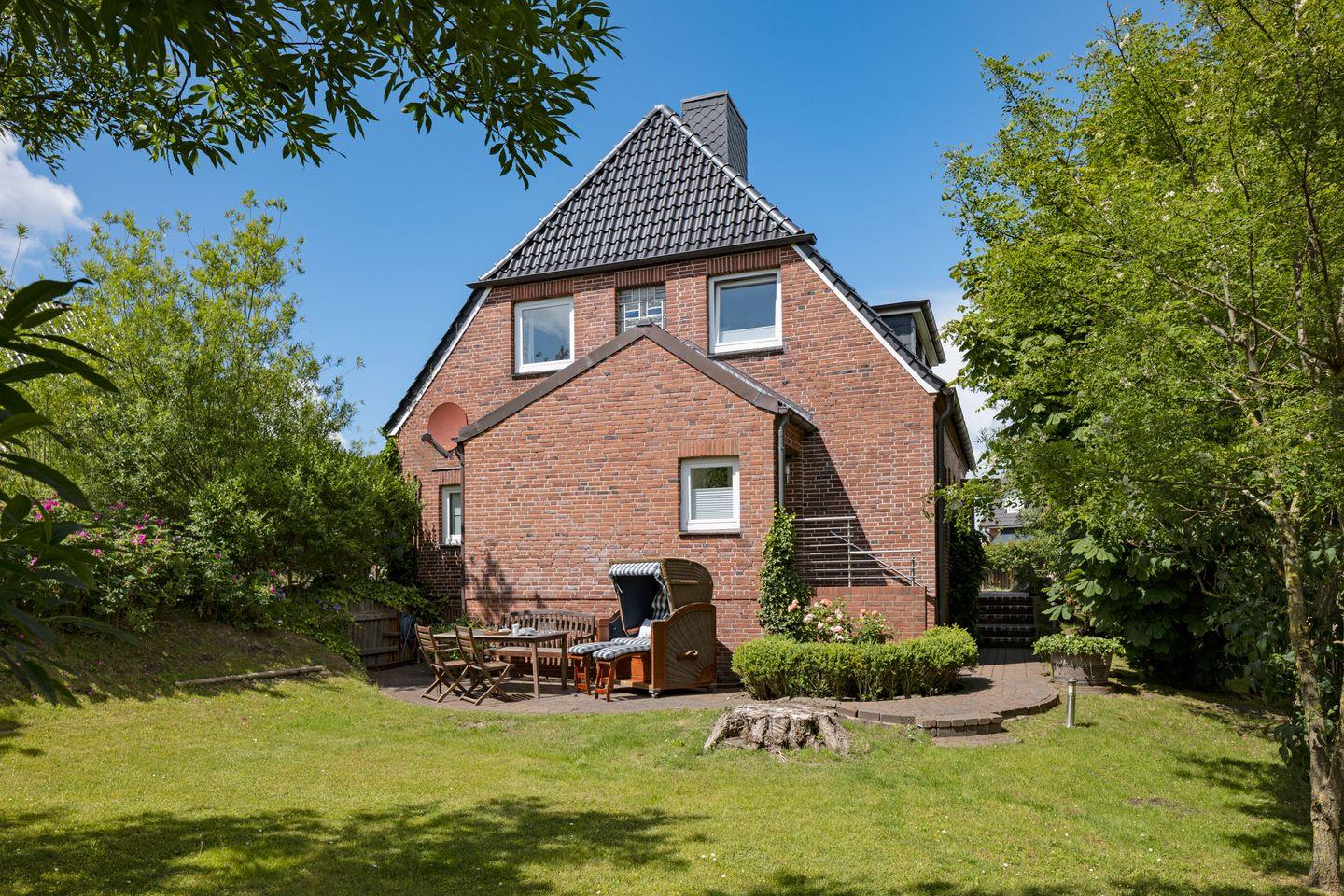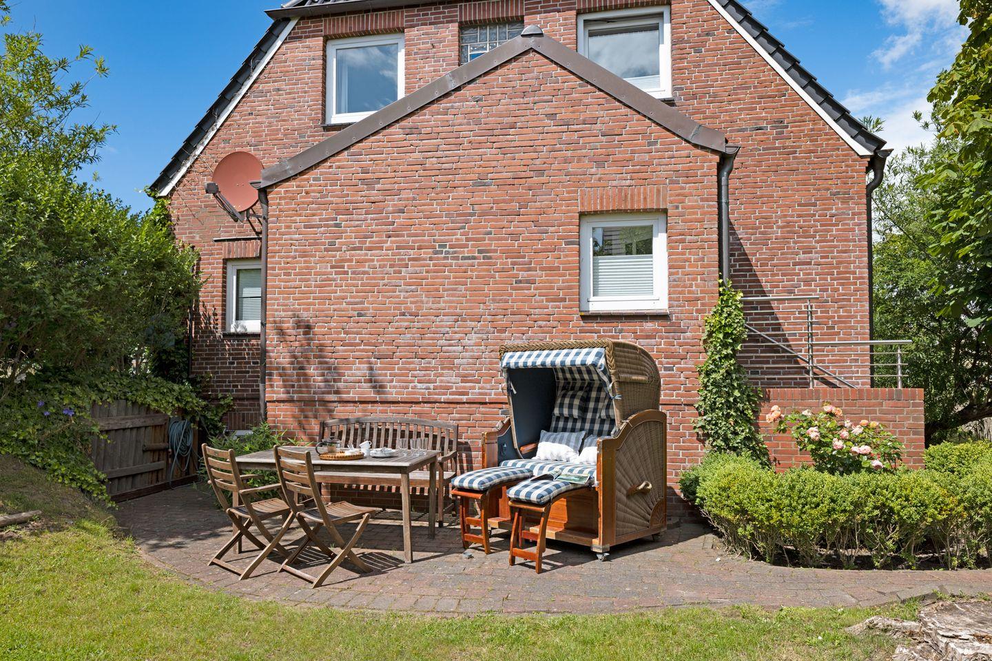 "Willkommen an Bord", Ihr Appartement Captain's Home für bis zu 5 Personen im 1 Obergeschoss mit drei Schlafräumen ist ideal für Familien mit Kindern. Sie haben Ihren eigenen Strandkorb und Gartenmöbel im großzügigen Garten.
