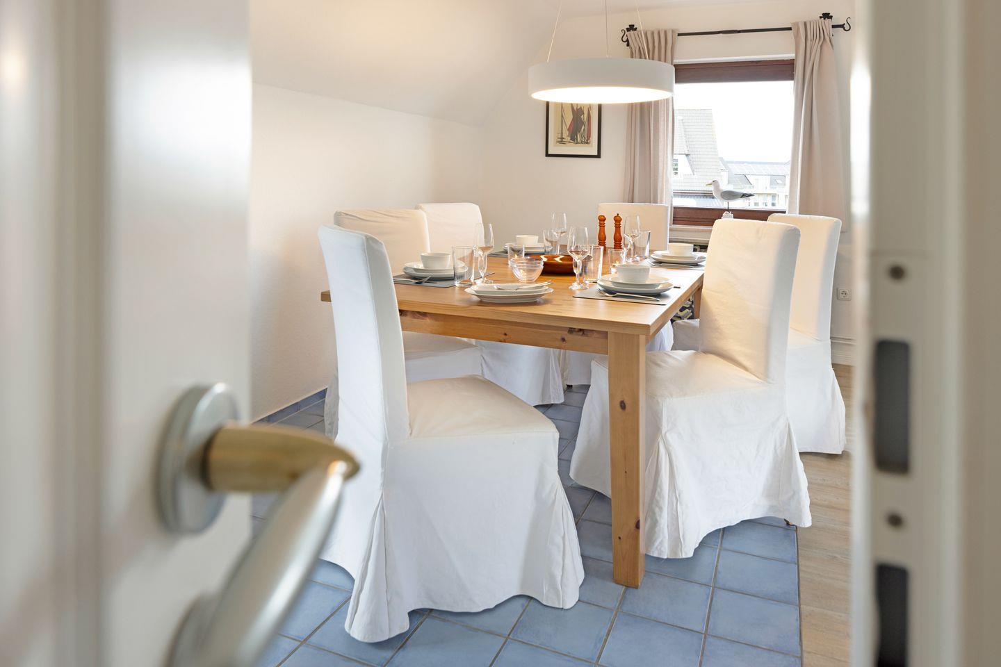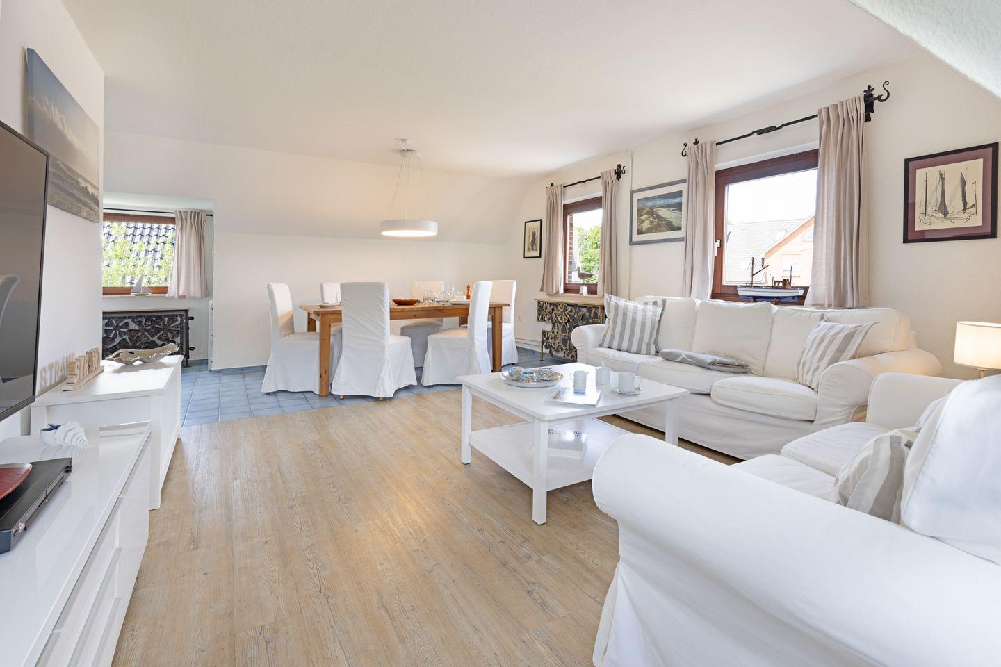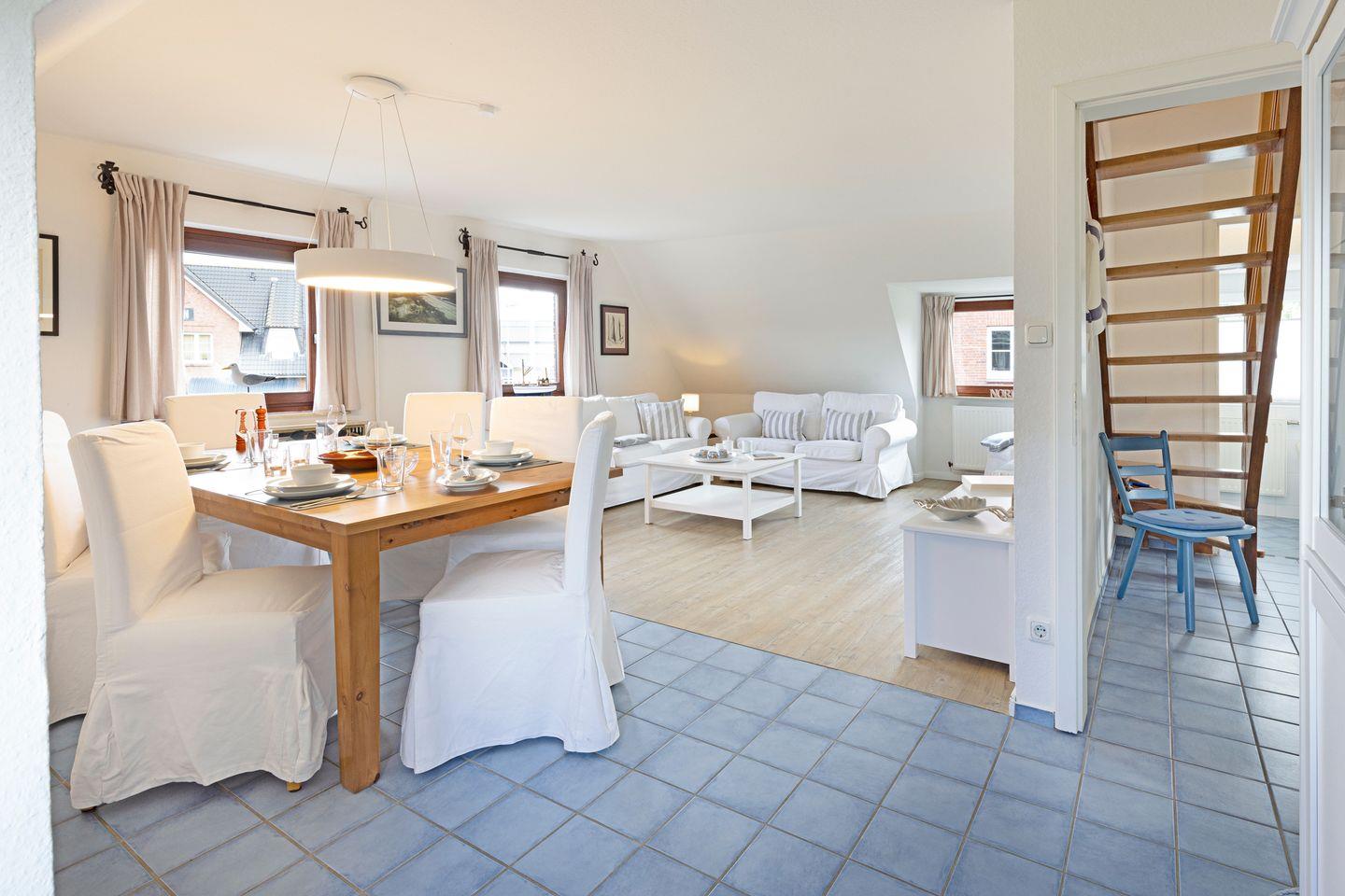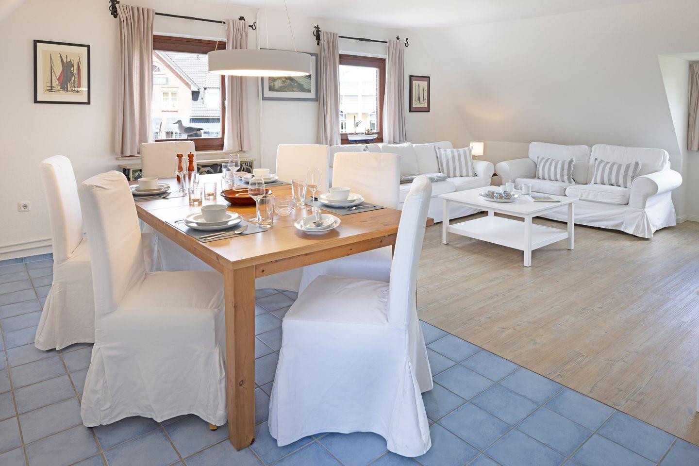 "Willkommen an Bord", Ihr Appartement Captain's Home für bis zu 5 Personen im 1 Obergeschoss mit drei Schlafräumen ist ideal für Familien mit Kindern. Sie haben Ihren eigenen Strandkorb und Gartenmöbel im großzügigen Garten.