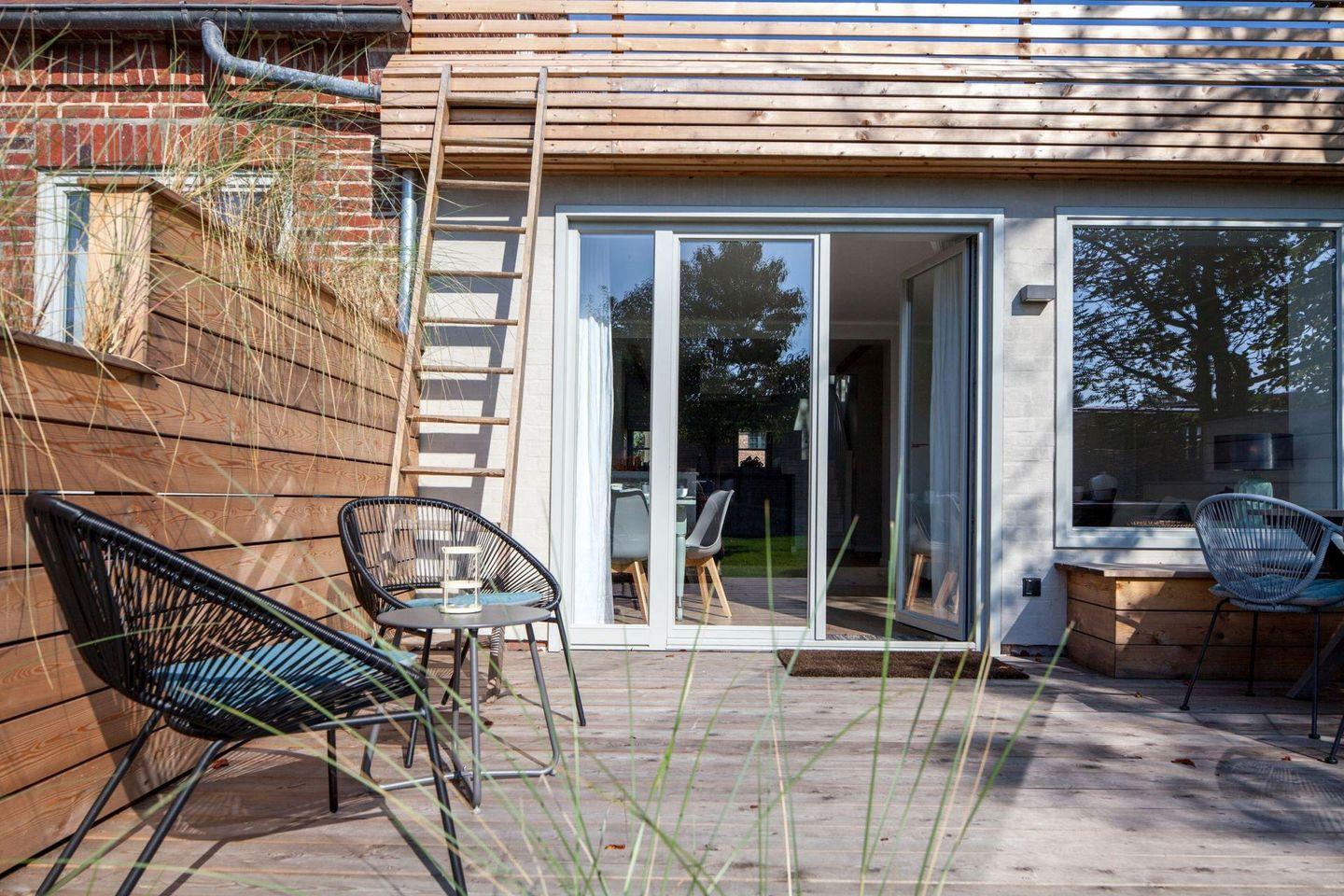 Stilvolles Ferienreihenhaus für bis zu 4 Personen mit großer Dachterrasse, Garten und Sauna.