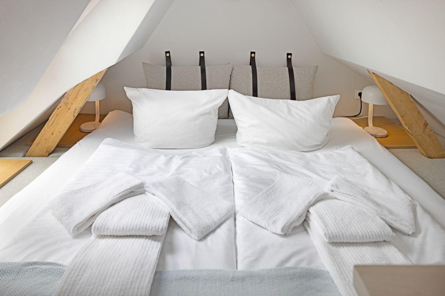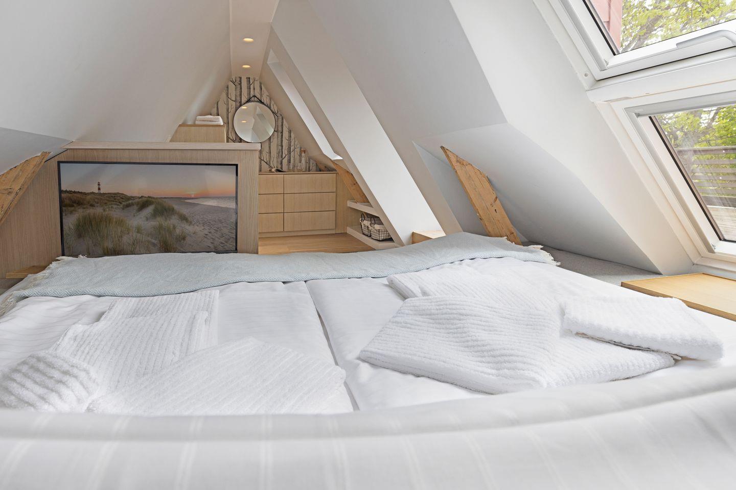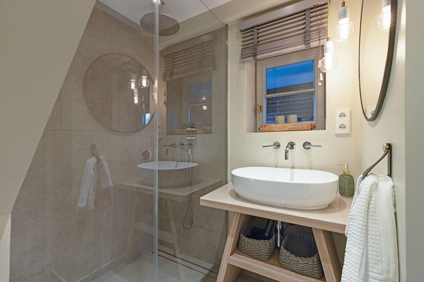 Schlafen Sie gut in den zwei Schlafräumen mit Doppelbett (1. Stock) und zwei Einzelbetten (EG). Ein edles Duschbad im EG vervollständigen das schicke Urlaubsdomizil.