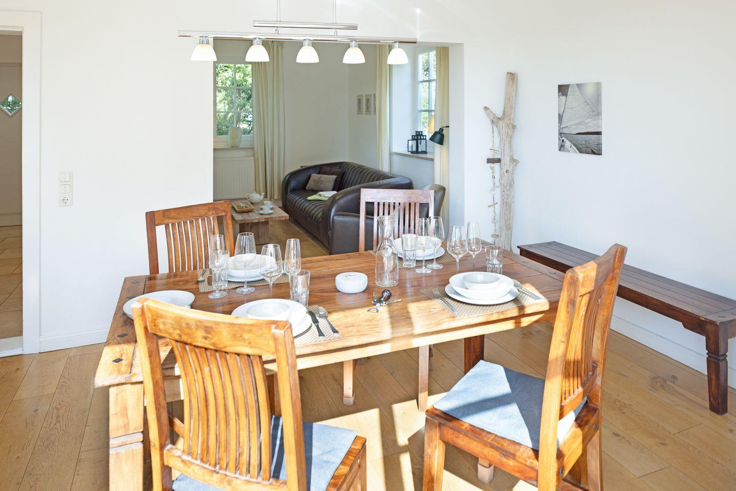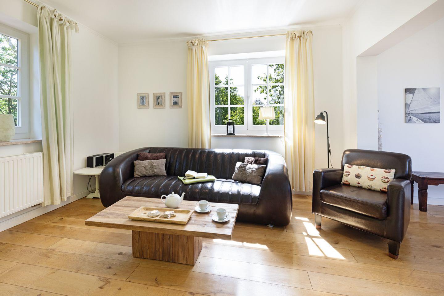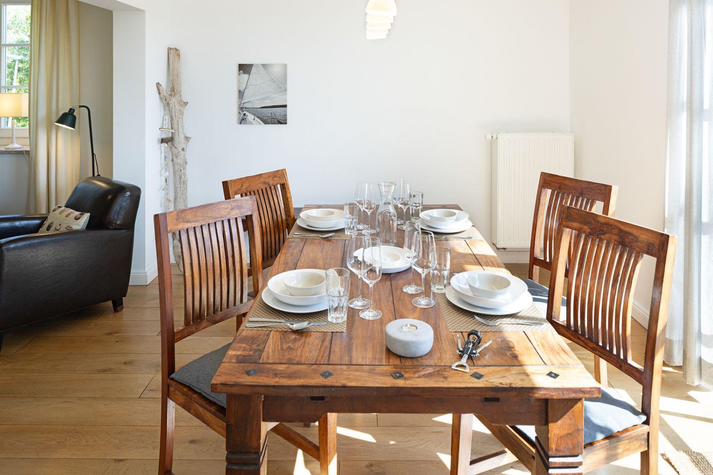 Willkommen im Ferienhaus "Frischwasser" (80 m2). Die idyllisch unter Reet liegende Haushälfte befindet sich auf einer Anhöhe.