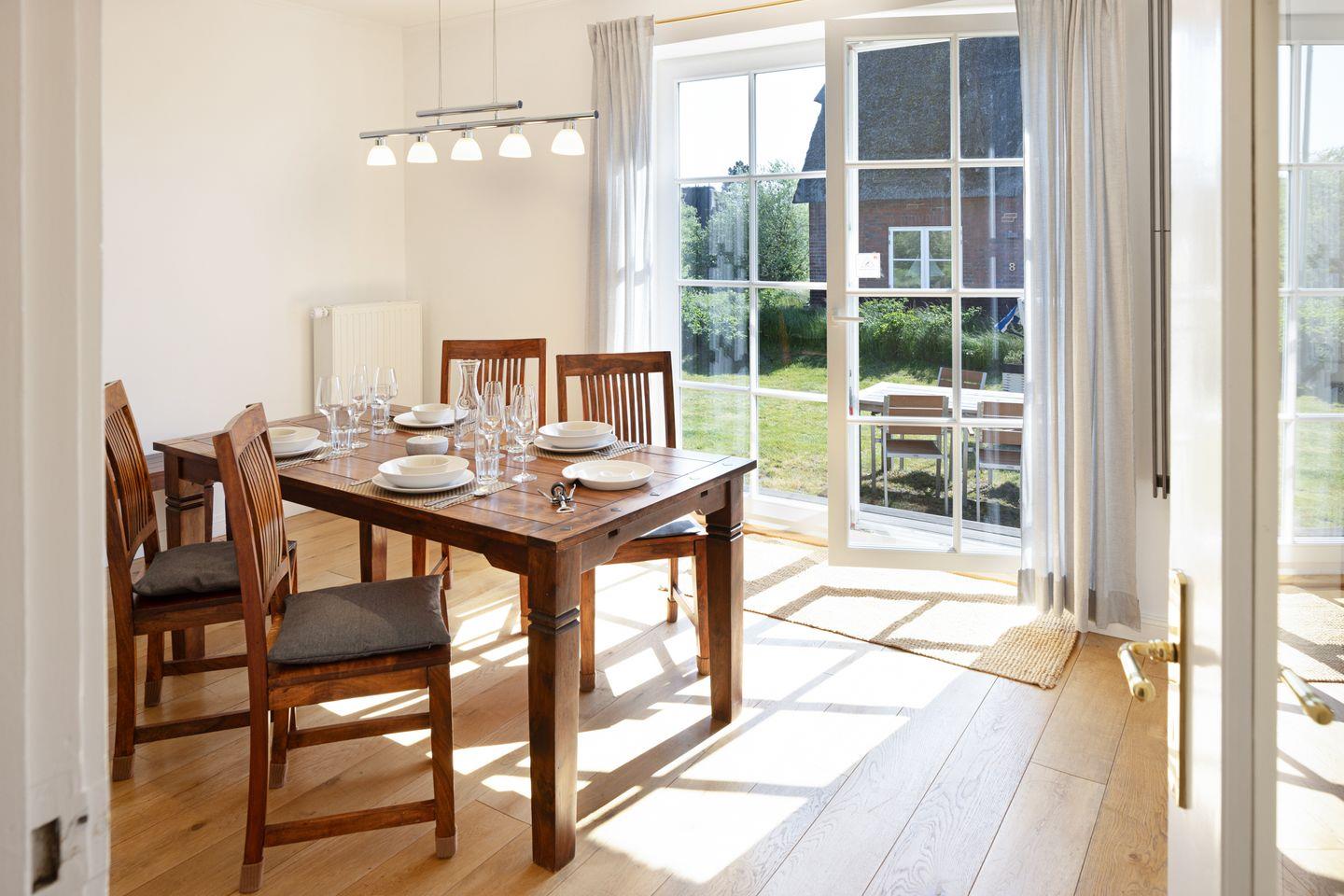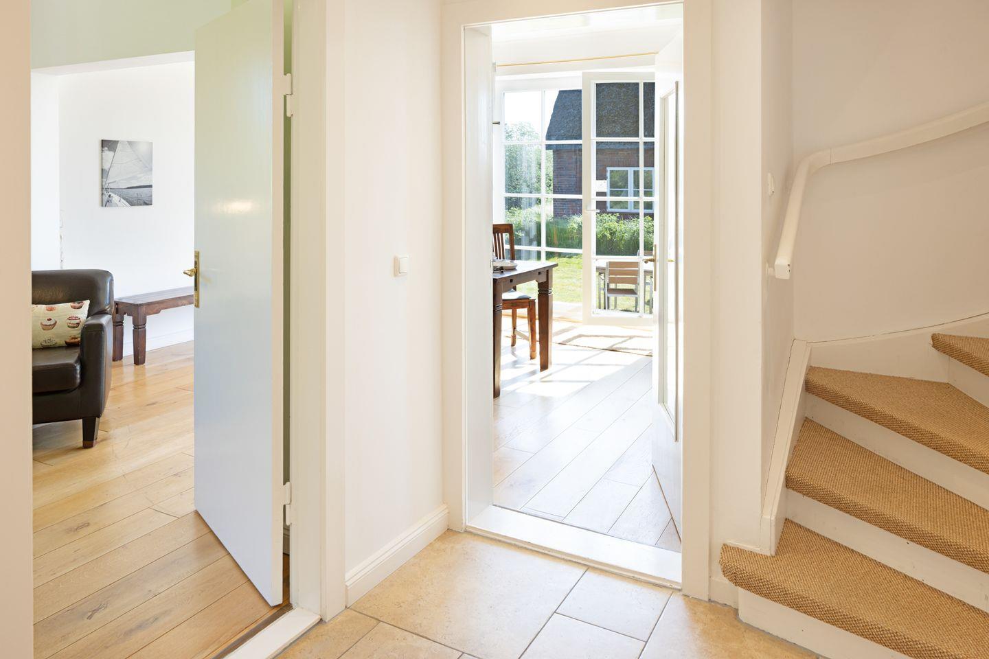 Es ist südlich ausgerichtet und besitzt einen großen Garten. Direkt gegenüber befindet sich im Frischwassertal ein kleiner Park. Ihr an einer ruhigen Straße gelegenes Domizil im Landhausstil bietet Platz für bis zu vier Personen. Im Erdgeschoss finden Sie ein geräumiges Wohn-/Esszimmer mit offener, gut ausgestatteter Küche. Das Obergeschoss (geschlossenen Treppe) ist unterteilt in zwei Schlafräume (eines mit Doppelbett, eines mit zwei Einzelbetten). Ebenfalls im OG befindet sich ein großzügiges Badezimmer mit Dusche und Badewanne. Etwa 5 Minuten zu Fuß entfernt erreichen Sie das Wattenmeer.