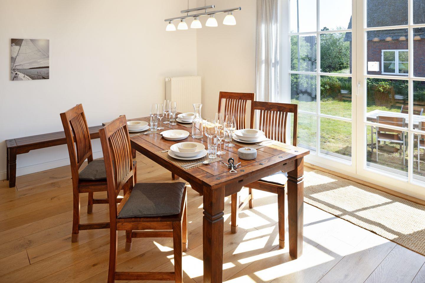 Idyllisch gelegenes Feriendoppelhaus im Landhausstil unter Reet mit für bis zu 4 Personen in ruhiger Lage mit großem Garten.