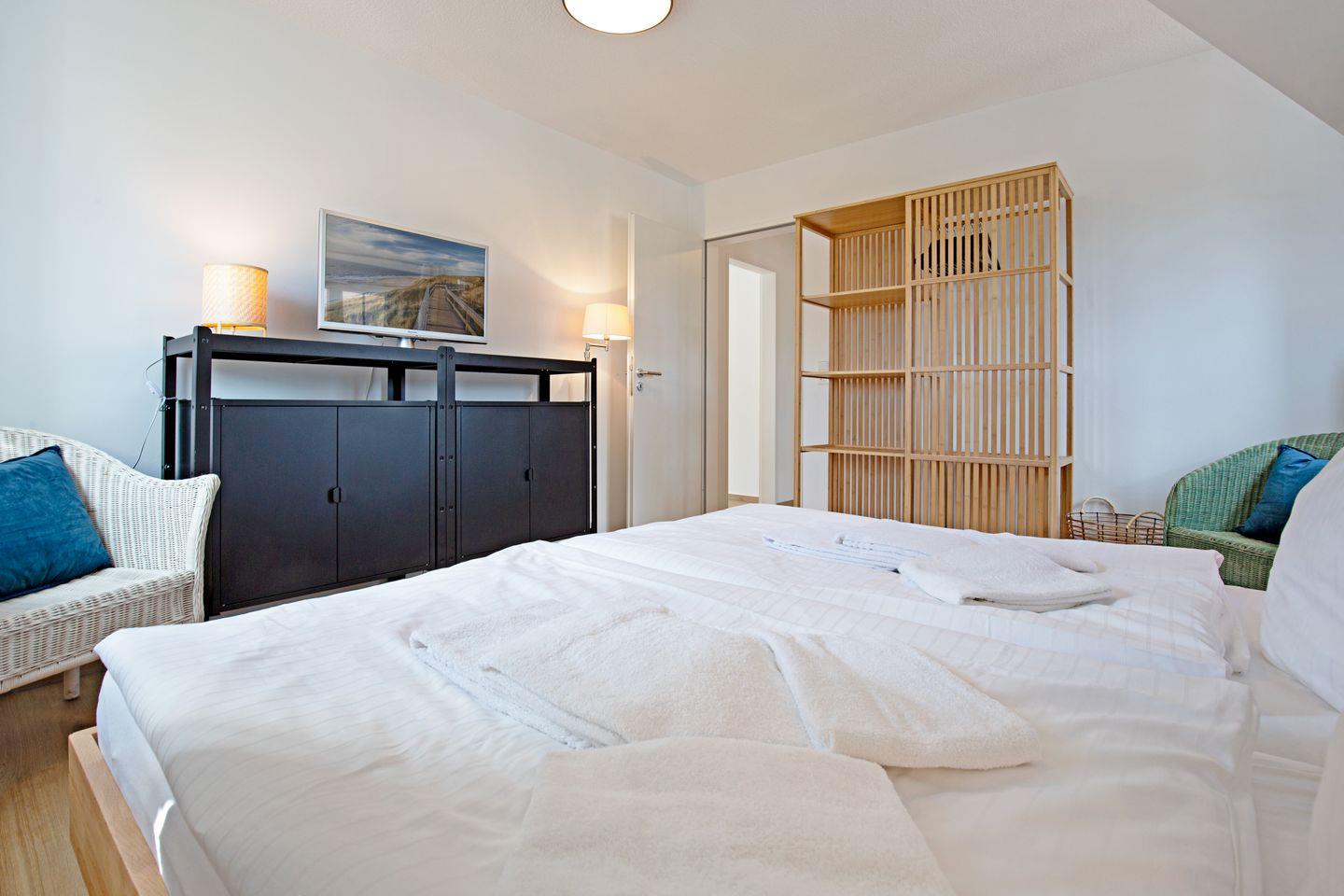 Zwei komfortable Schlafzimmer versprechen erholsame Nächte, während das moderne Bad mit Dusche für einen frischen Start in den Tag sorgt. Der Balkon mit Strandkorb lädt ein, die Sonne zu genießen und die Sylter Luft zu atmen.