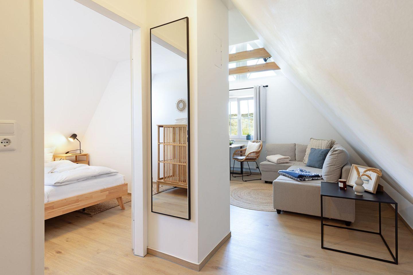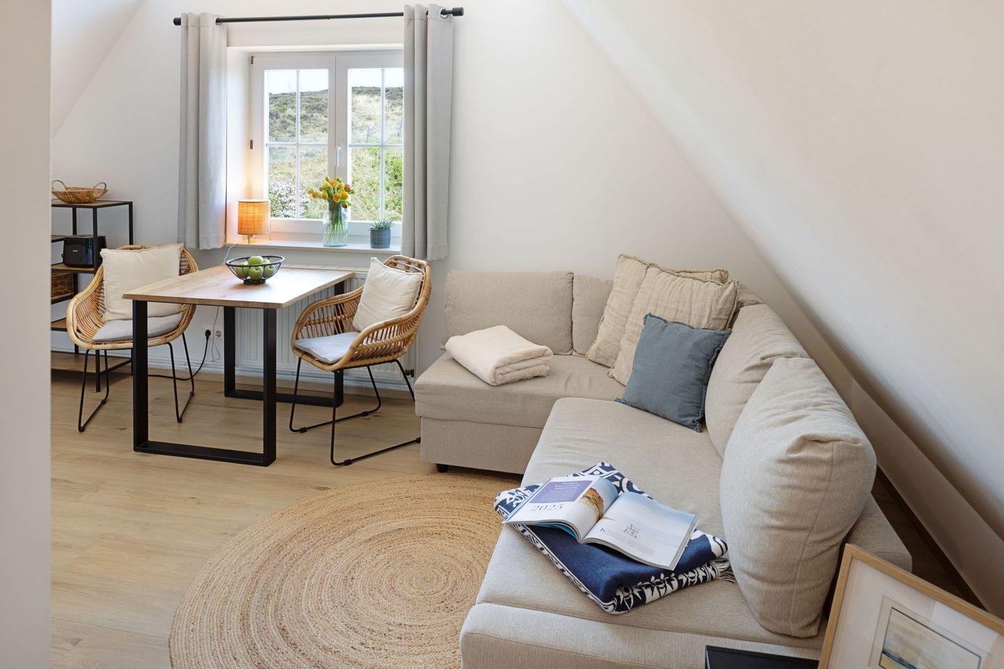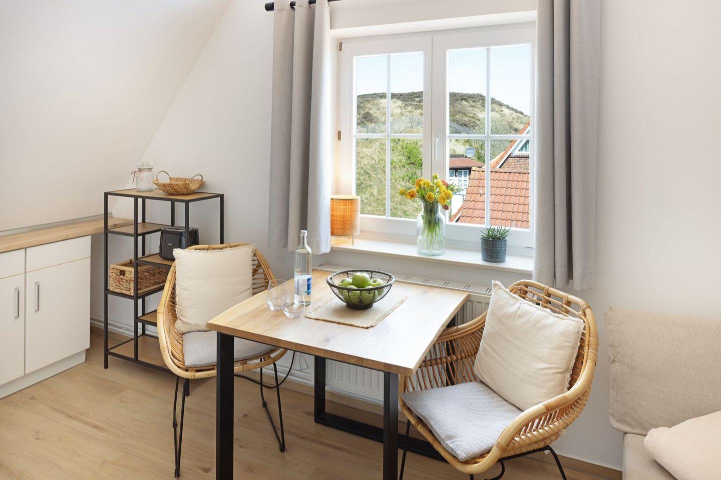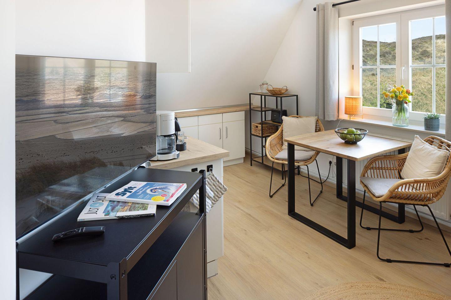 Gemütliches Appartement für 2 Personen im Dachgeschoss mit Gemeinschaftsgarten mit Strandkorb direkt an der Lister Dünenlandschaft.