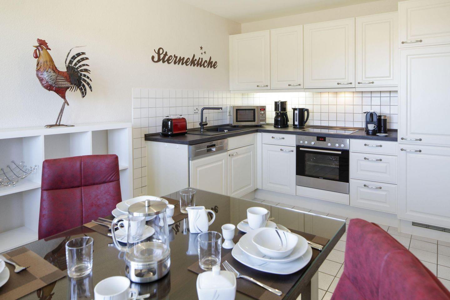 Großzügiges Appartement im Erdgeschoss unter Reet für 4 Personen mit Terrasse und Meerblick.