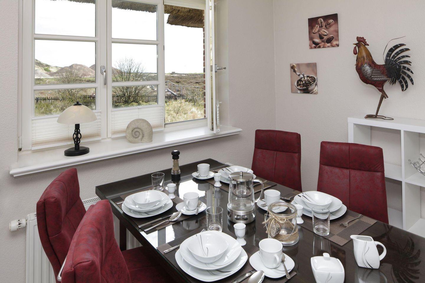 Direkt am Haus befindet sich ein PKW-Stellplatz. Es steht Ihnen eine Terrasse mit Gartenmöbeln zur Verfügung. Die Nähe zum Lister Hafen bietet abwechslungsreiche Möglichkeiten für Erholungssuchende.