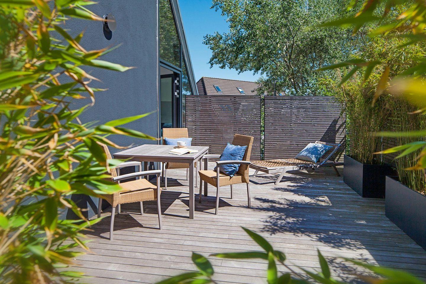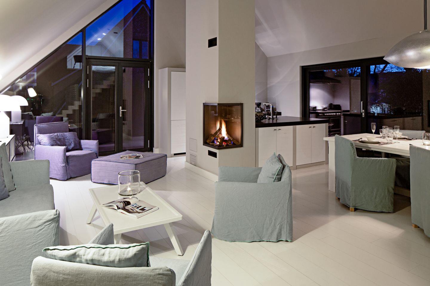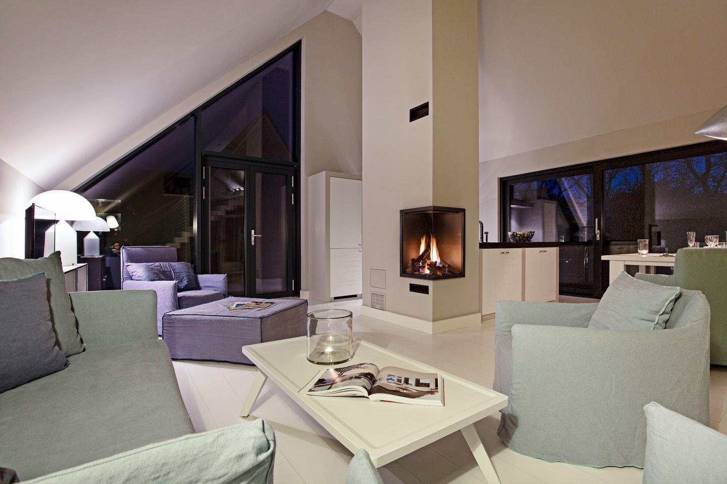 Modernes Feriendoppelhaus für bis zu vier Personen mit Kamin, Terrasse und Fitnessbereich.