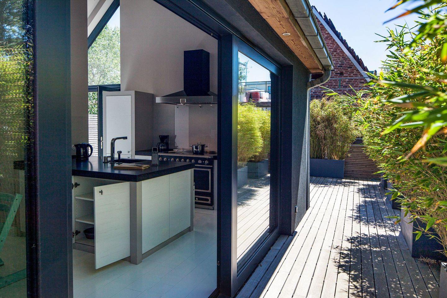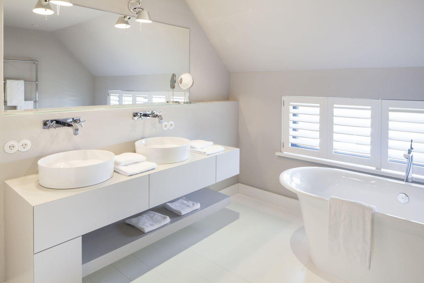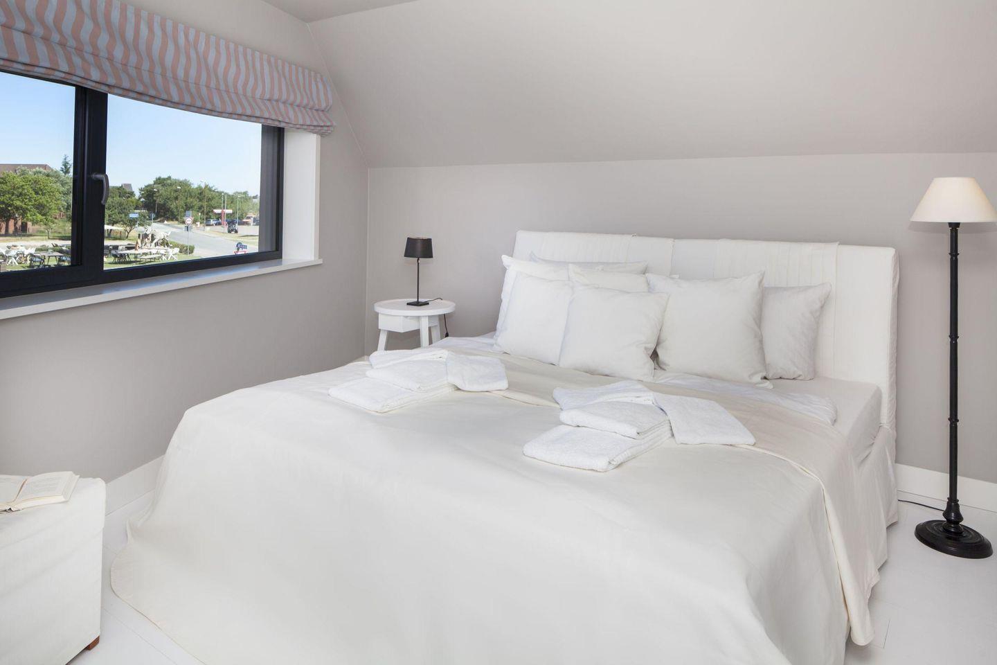 Eine Schlafcouch ist zusätzlich im Wohnzimmer vorhanden. Zwei Bäder, ebenfalls in der 1. Etage - eines mit freistehender Wanne - und Dusche, die nicht einsehbare Terrasse, sowie ein umfangreicher Fitnessbereich ergänzen dieses außergewöhnliche Feriendomizil.