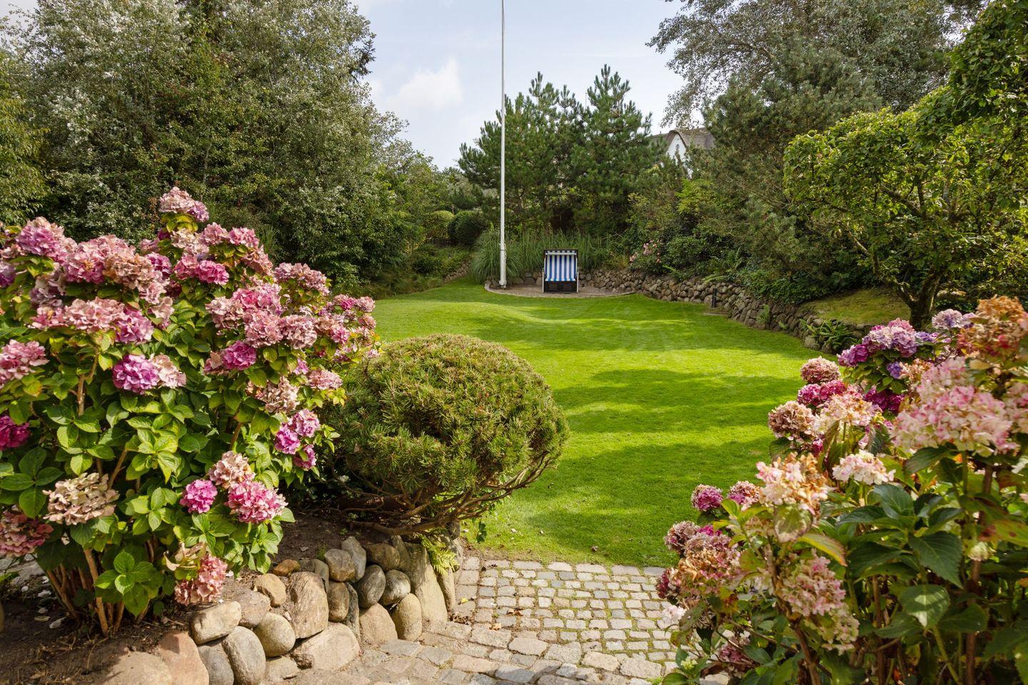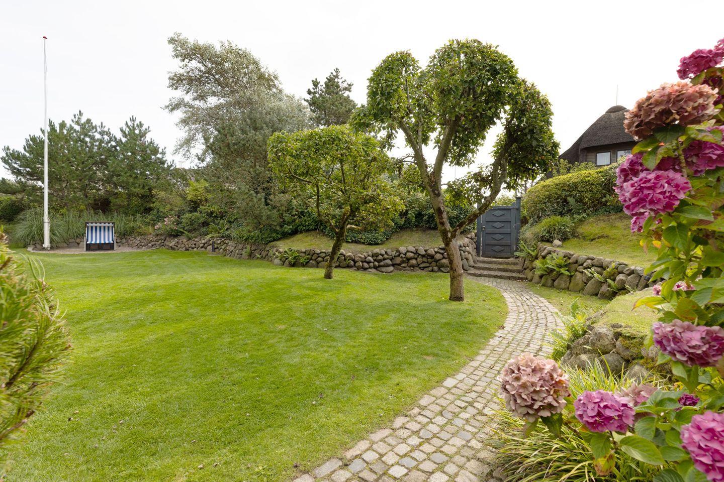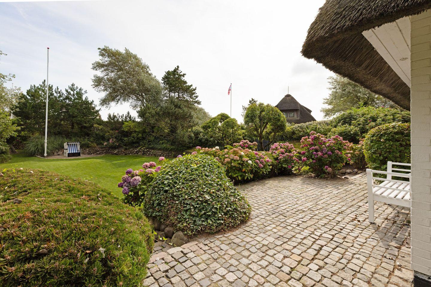 Großzügiges Ferienhaus unter Reet mit großem Garten und Strandkorb sowie Tischtennisplatte und Gartenmöbeln am Lister Oststrand.