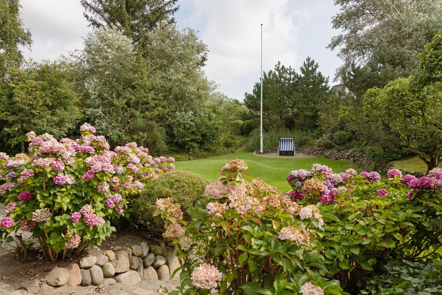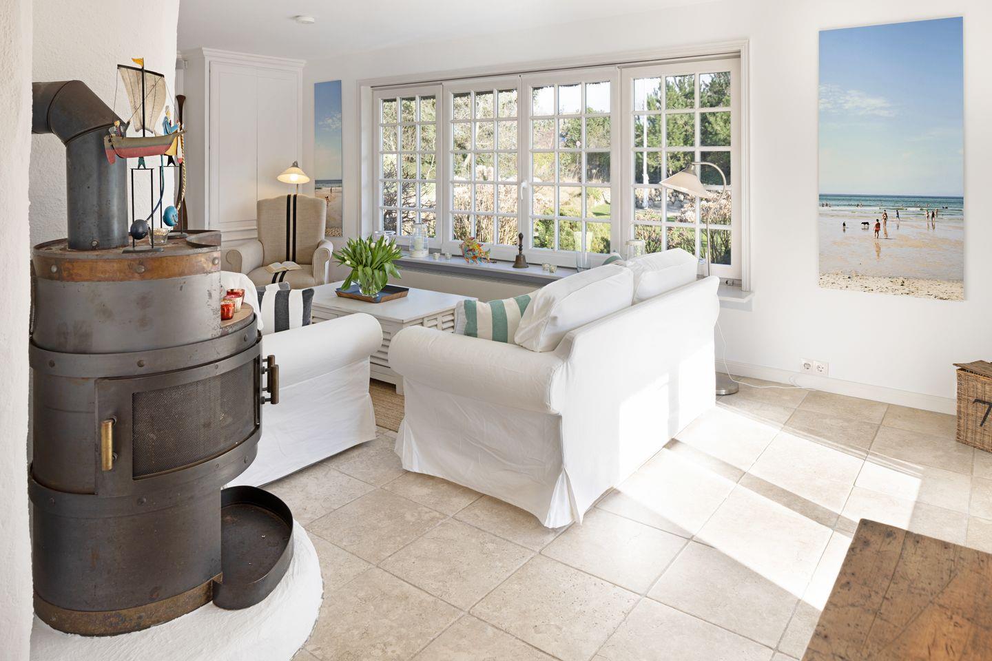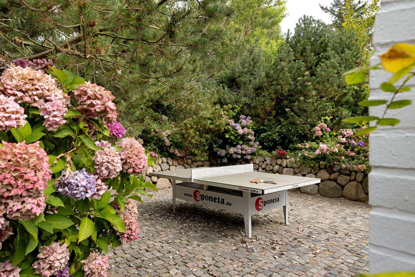 Vom Wohnzimmer aus gelangen Sie in den großen Garten mit Strandkorb, Tischtennisplatte - und Gartenmöbeln. Vom Gartentor aus erreichen Sie den 30 Meter entfernten Oststrand.