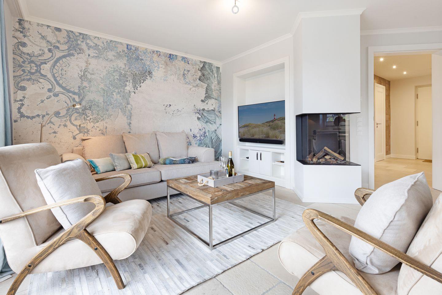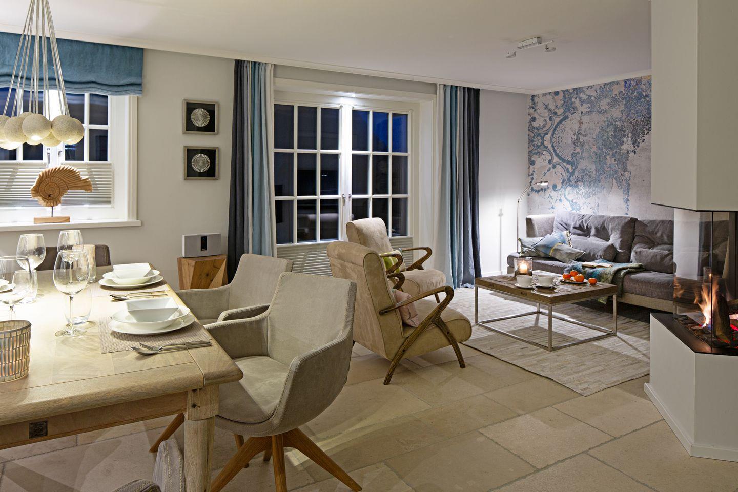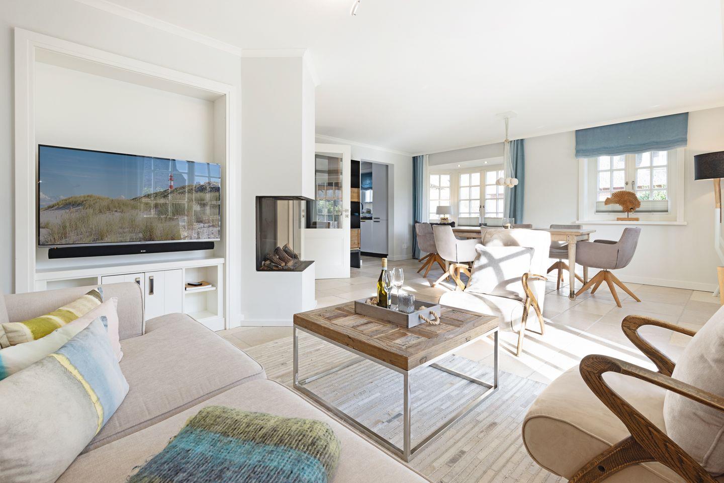 Großzügiges Feriendoppelhaus unter Reet für bis zu sechs Personen mit Saunalandschaft, Gas-Kamin, Garten und Terrasse in Strandnähe.