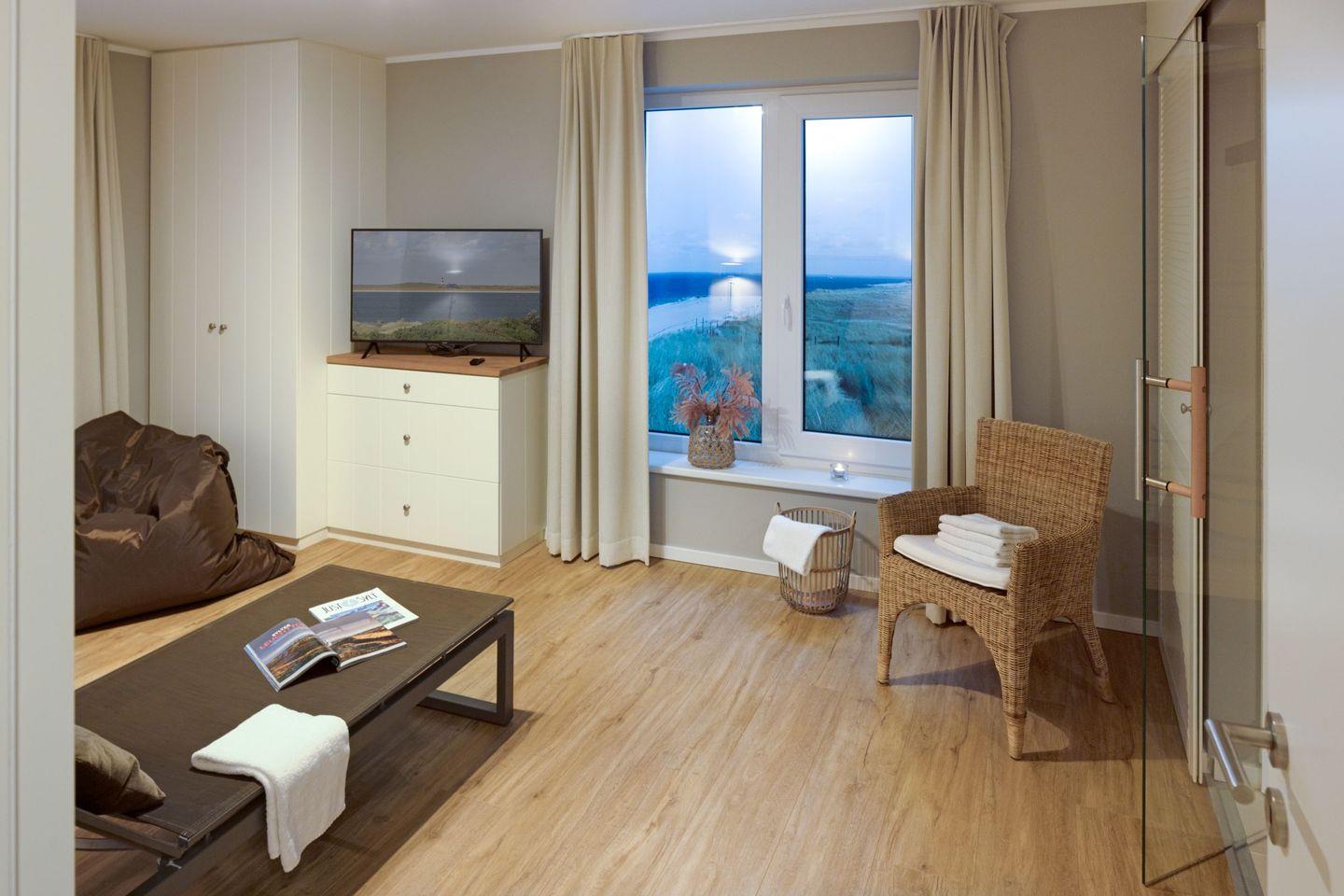 Willkommen im Appartement "Groote Leevke". Das im Erdgeschoss gelegene Ferienappartement bietet Ihnen Platz für 2 Personen auf 100m². Das Appartement nahe dem Lister Tor verfügt über ein Schlafzimmer mit Doppelbett im Erdgeschoss, zwei Bäder, eine moderne offene Küche, eine große Sauna im Souterrain sowie einen Garten mit Terrasse und Gartenmöbeln.