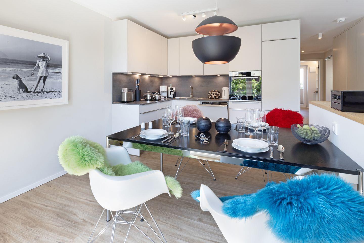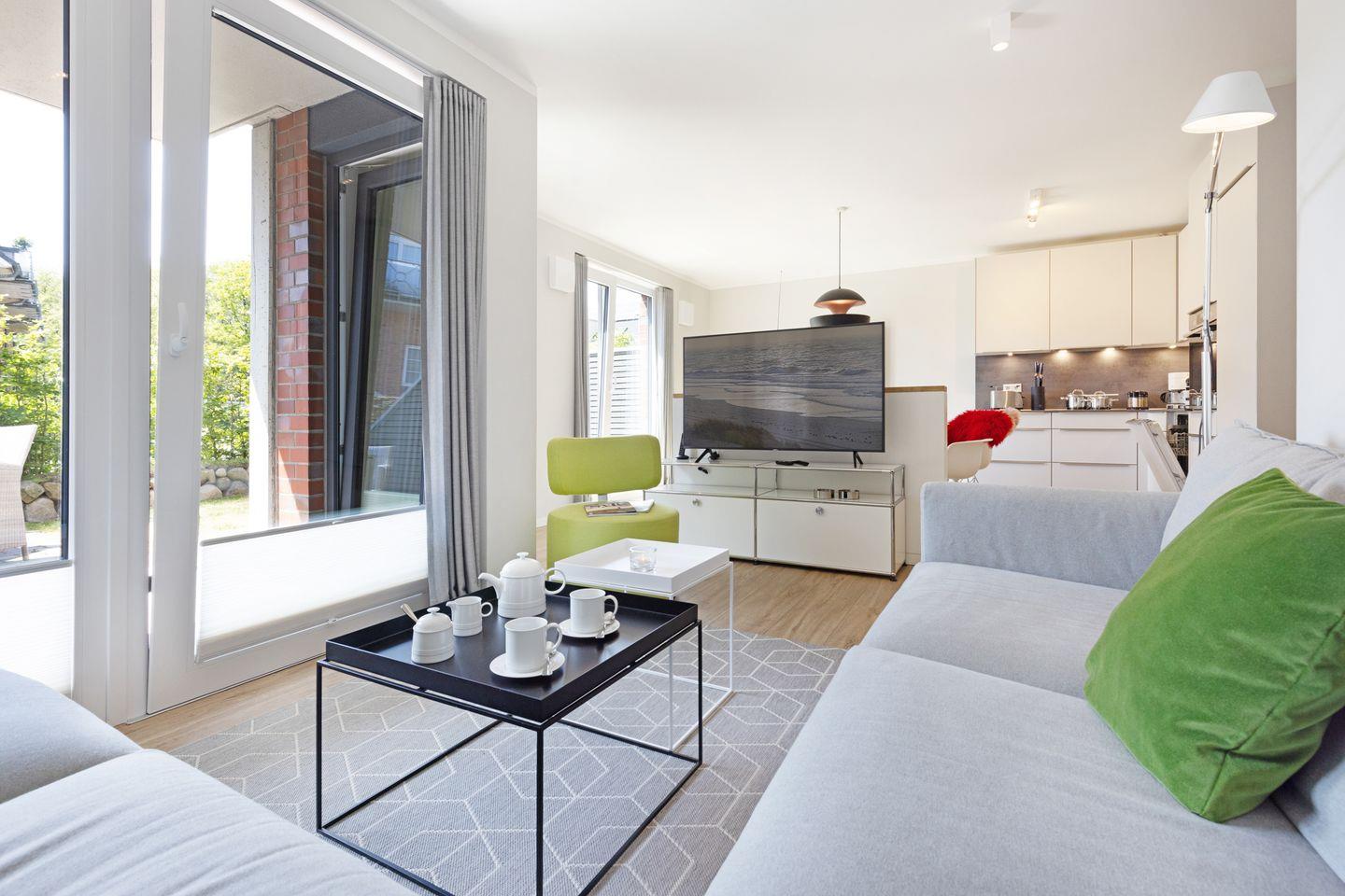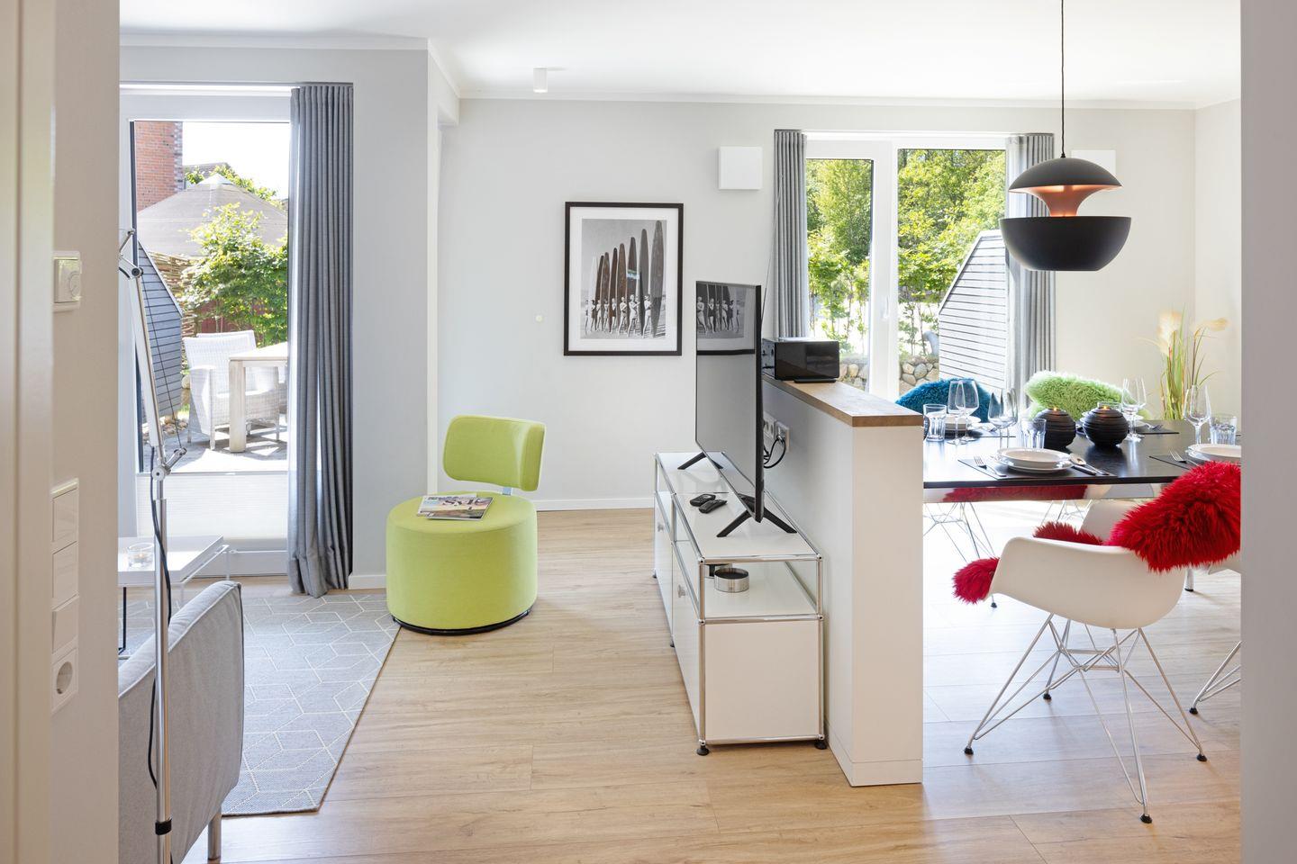 Willkommen im Appartement "Inseltraum". Das im Erdgeschoss gelegene Ferienappartement bietet Ihnen Platz für 4 Personen auf 100m². Das Appartement nahe dem Lister Tor verfügt über zwei Schlafzimmer mit Doppelbett, zwei Duschbäder, eine moderne offene Küche, sowie einen Garten mit Terrasse und Gartenmöbeln.