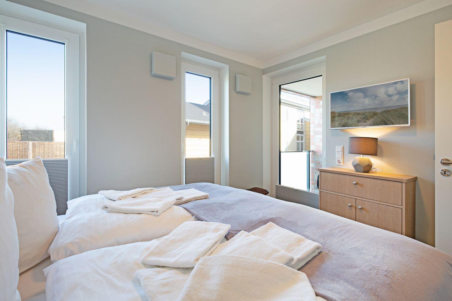 Willkommen im Appartement "Priel". Das im Obergeschoss gelegene Ferienappartement bietet Ihnen Platz für 4 Personen auf 80m². Sie erreichen Ihr Domizil bequem mit dem Fahrstuhl im Haus. Das Appartement nahe dem Lister Tor verfügt über zwei Schlafzimmer mit Doppelbett und Flachbildfernseher, zwei Bäder, eine moderne offene Küche, sowie zwei Balkone.
