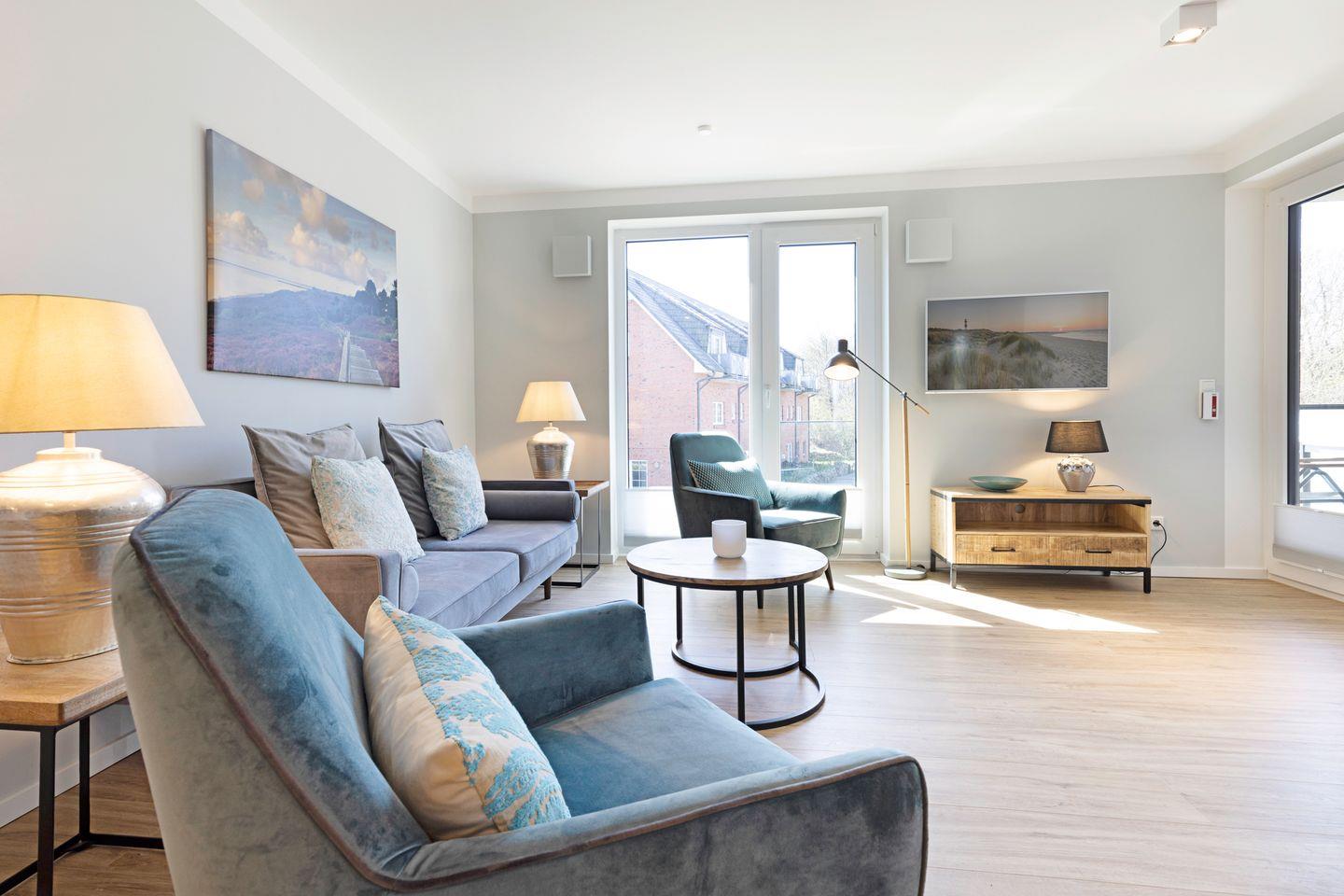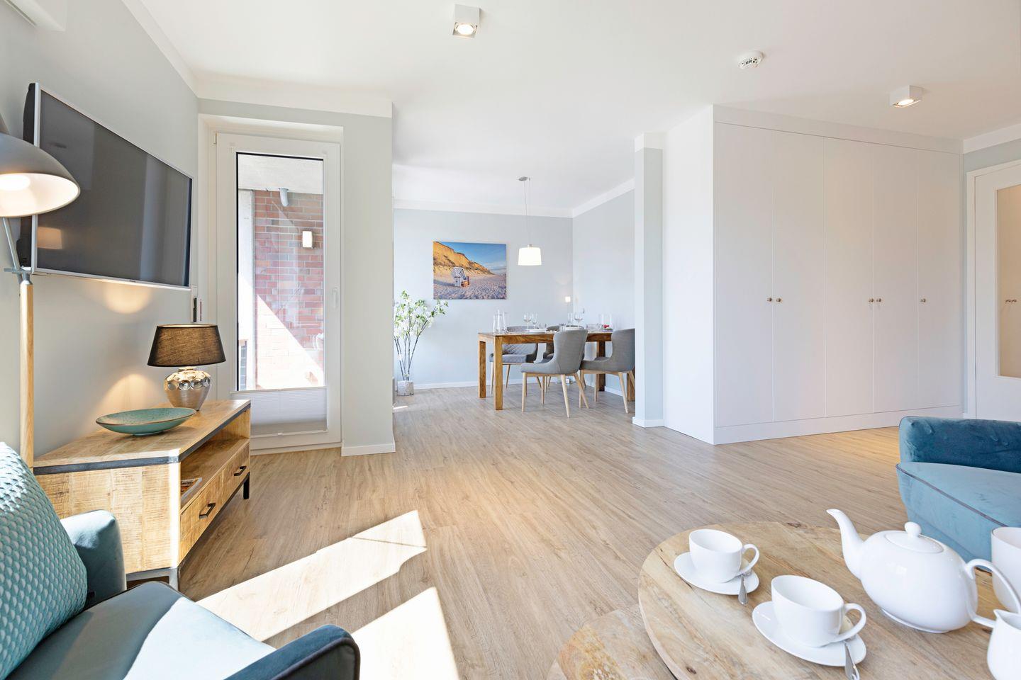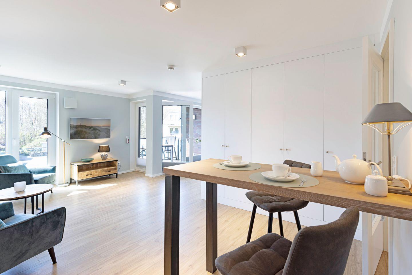 Großzügiges Appartement „Warft“ im Obergeschoss für 2 Personen mit Balkon und Fahrstuhl. Nur wenige Minuten von der Oststrandpromenade, Lister Hafen und Einkaufsmöglichkeiten entfernt.