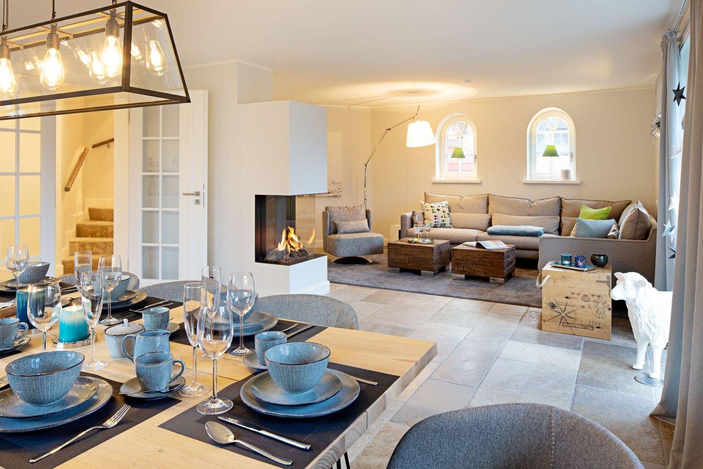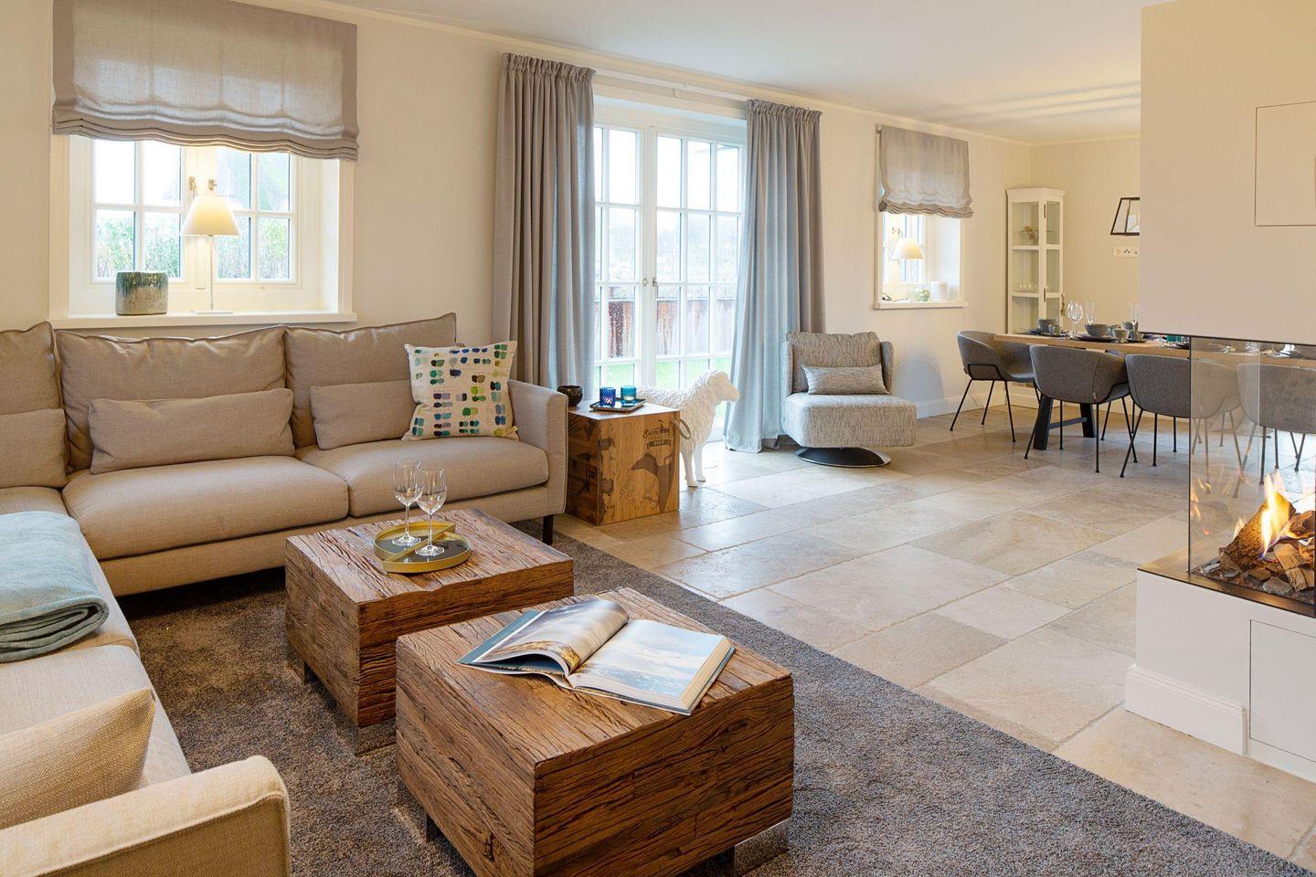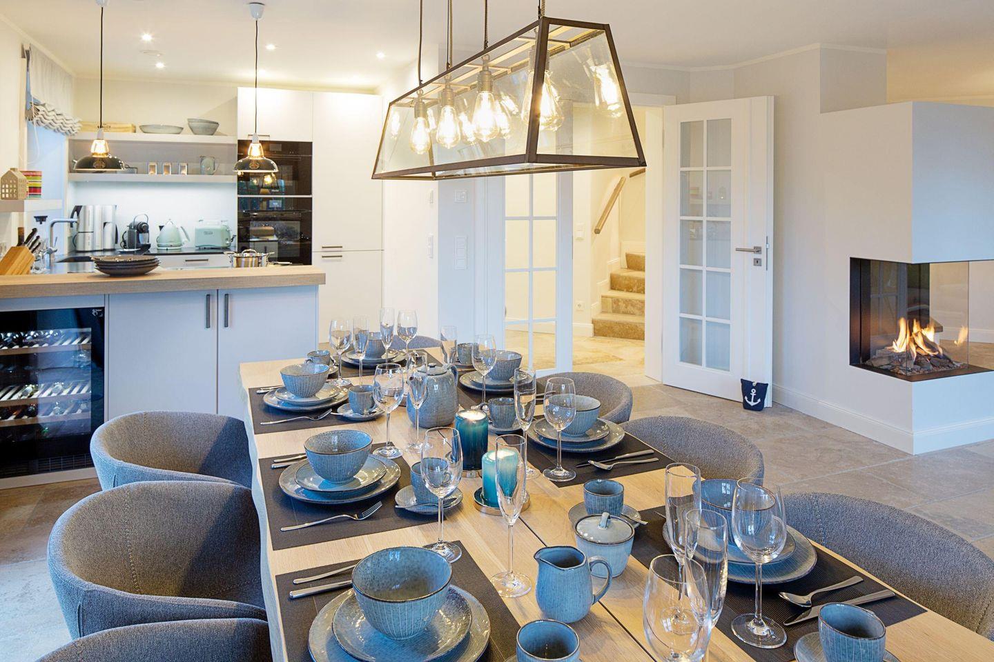 Das hochwertig ausgestattete Ferienhaus unter Reet ist ca. 200m vom Oststrand entfernt. Im großzügigen Wohn-Esszimmerbereich mit Gas-Kamin, der zum Verweilen einlädt, lässt sich wunderbar entspannen.