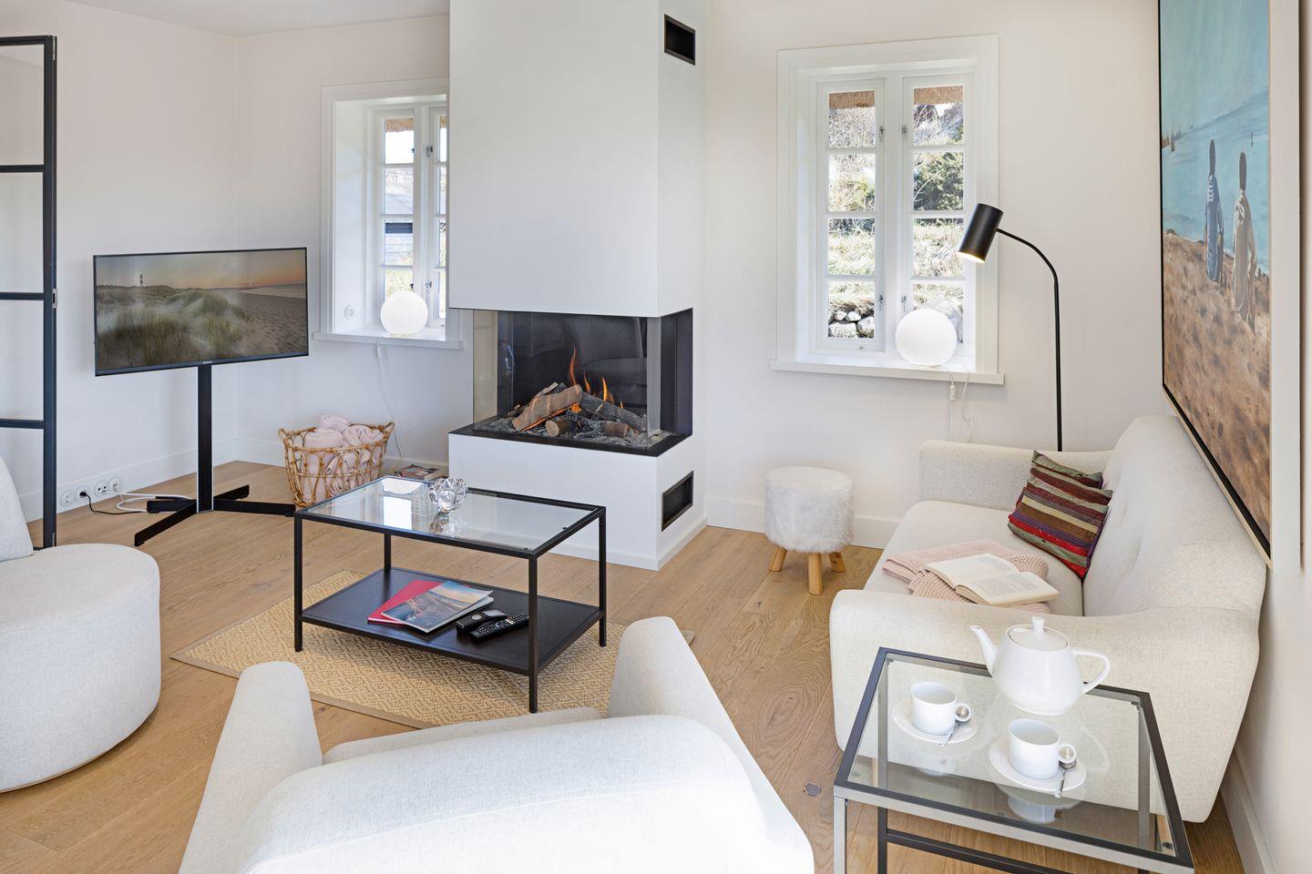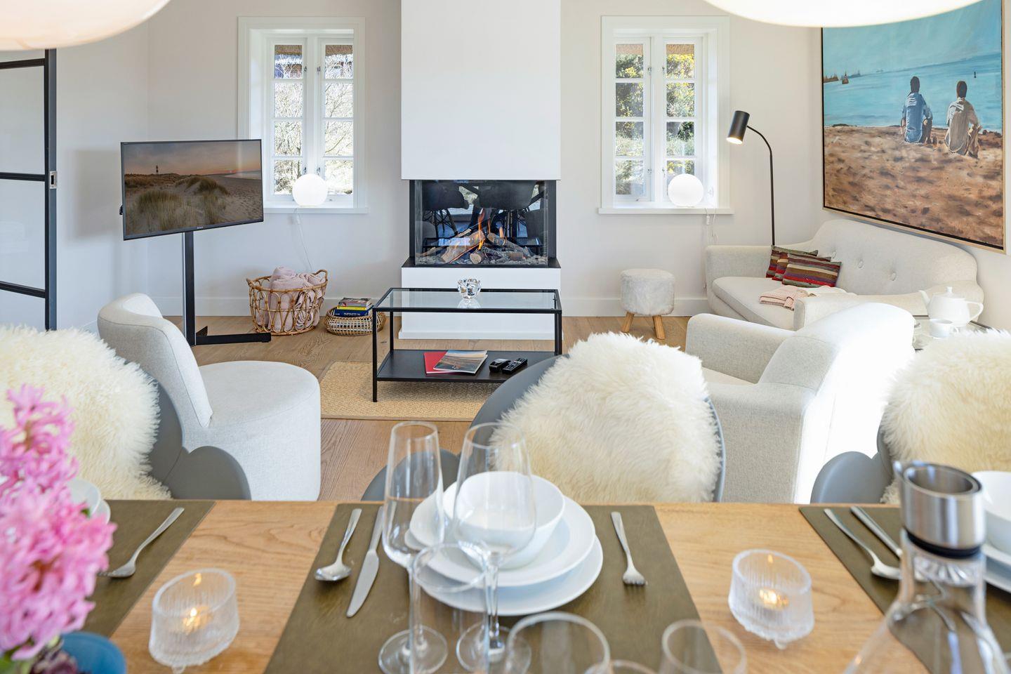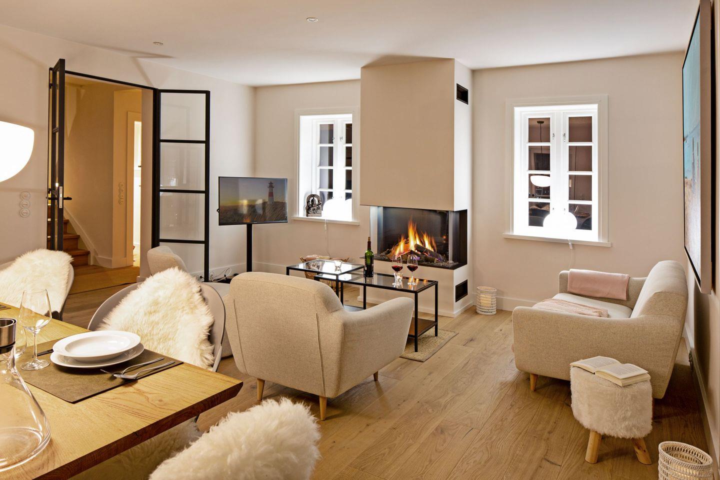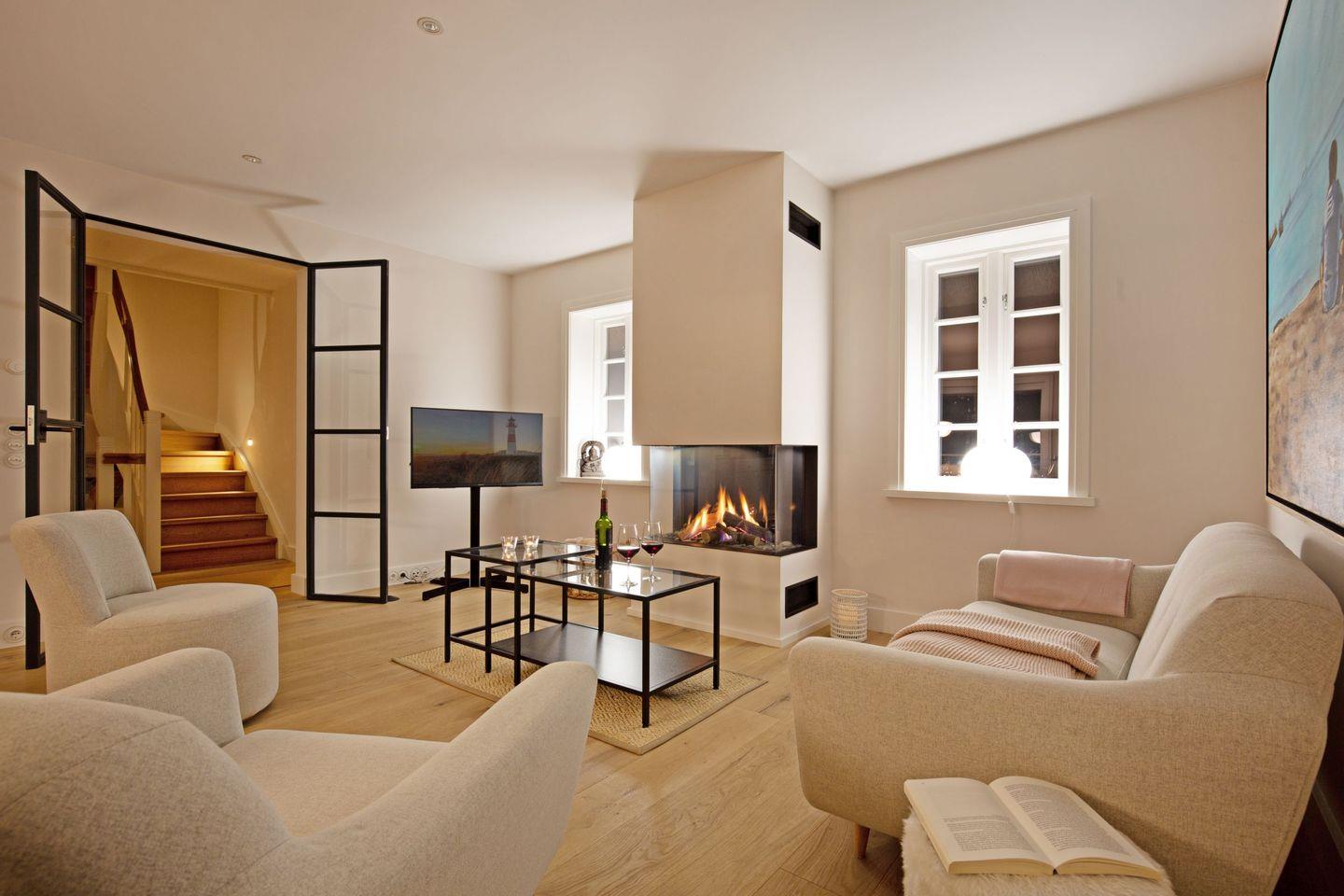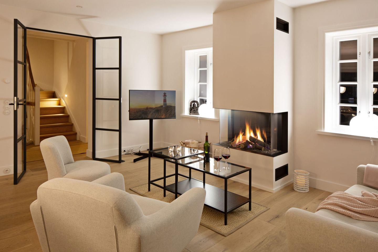 Stilvolles Reihenhaus nahe dem Lister Oststrand mit drei Schlafzimmern, gemütlichem Kamin, privater Sauna und möblierter Terrasse – ideal für erholsame Auszeiten zu jeder Jahreszeit.