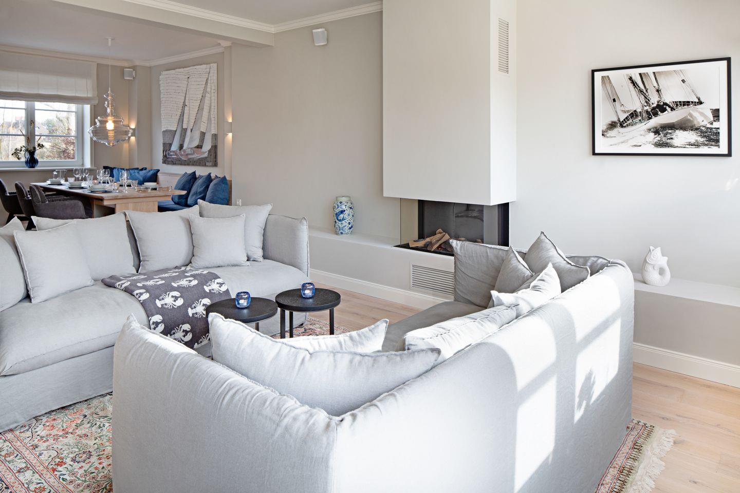 Luxuriöses familienfreundliches Doppelhaus für bis zu sechs Personen mit Dampfbad, Kamin, Garten und Terrasse in Strandnähe.