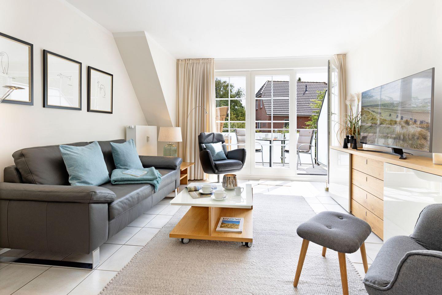 Modernes Appartement für drei Personen im 1. Obergeschoß mit Süd-Balkon und Strandkorb direkt an der Lister Dünenlandschaft.