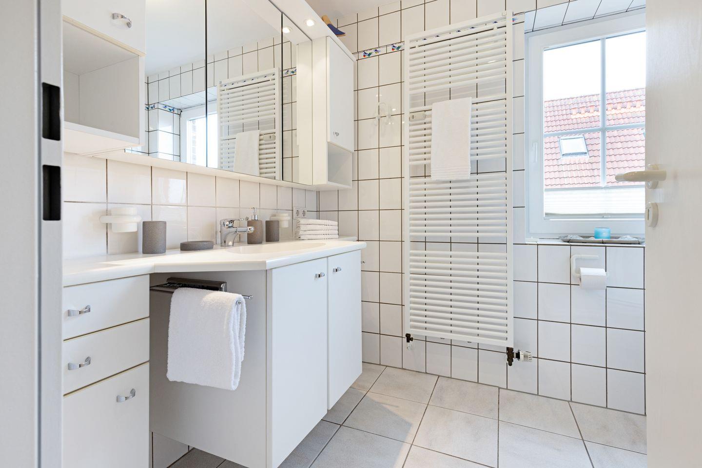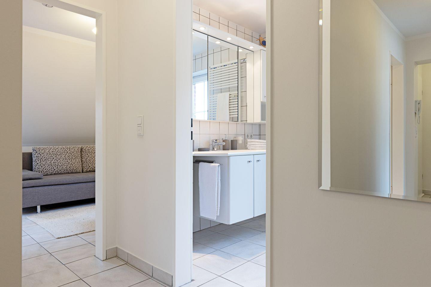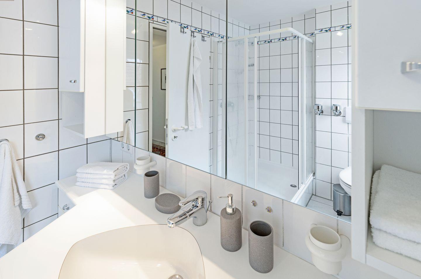 In der Wohnung befindet sich ebenfalls ein Badezimmer mit Dusche.