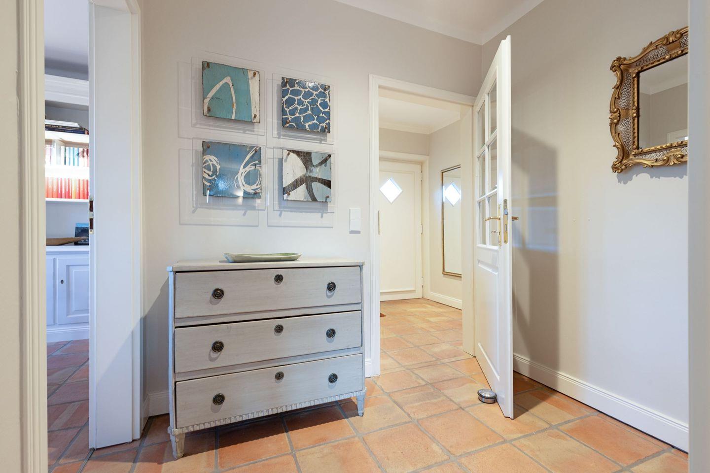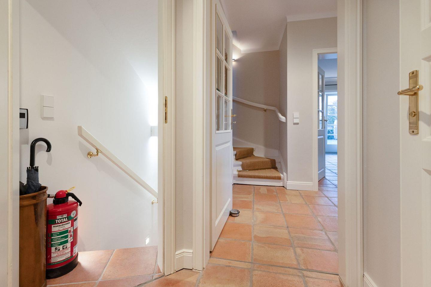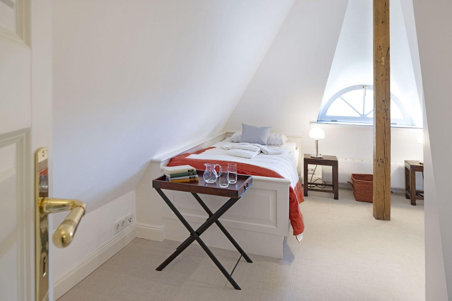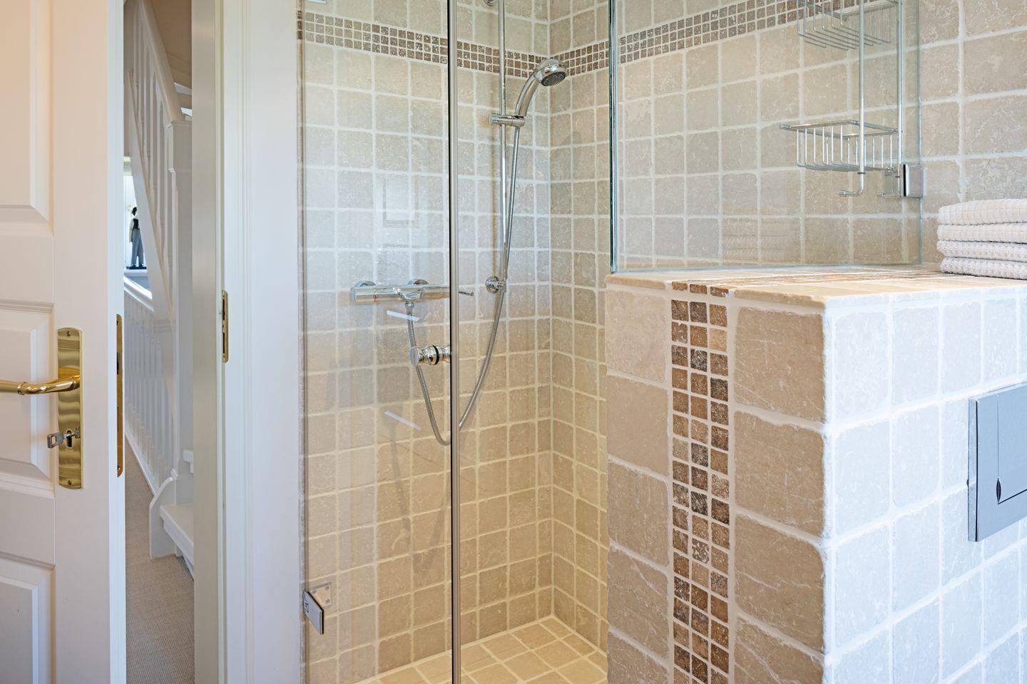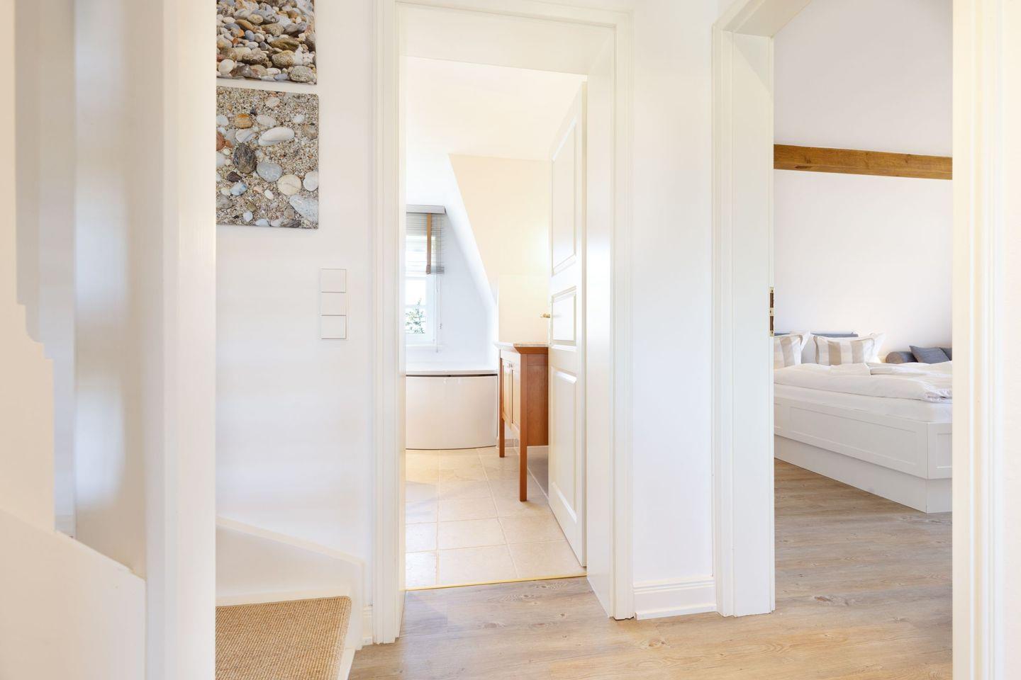 Im EG befindet sich ein Gäste-WC. Im ersten Stock befinden sich zwei Schlafzimmer – eines mit Doppelbett, eines mit Doppelbett und einem Einzelbett/Couch und ein Badezimmer mit Dusche und Wanne. Im Dachgeschoss befindet sich noch ein weiteres Schlafzimmer, ebenfalls mit zwei Einzelbetten. Auch hier finden Sie ein Badezimmer mit einer Dusche.