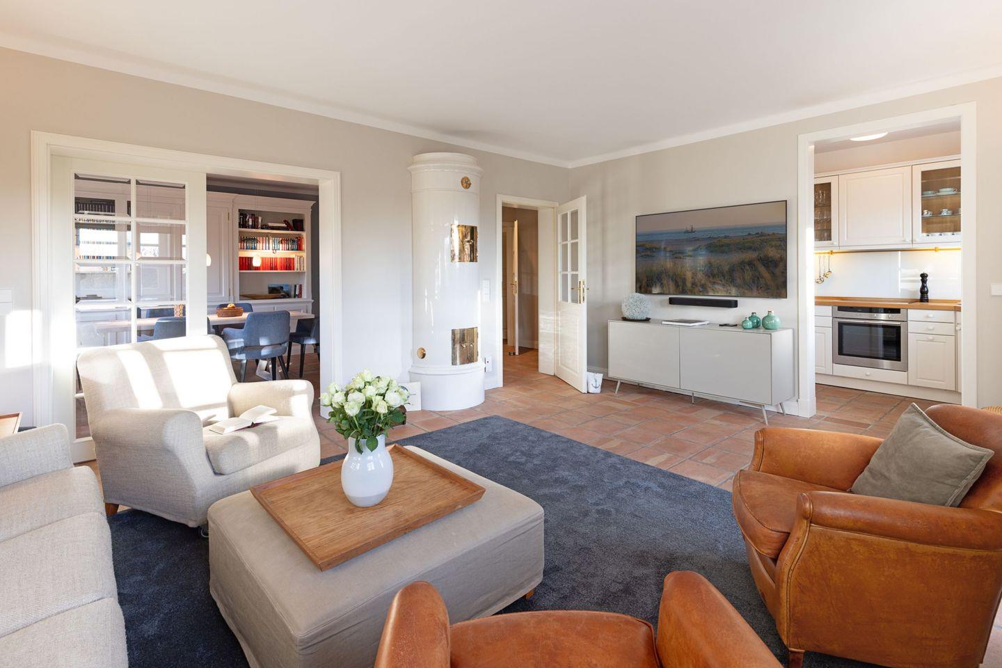 Der Heimathafen in List auf Sylt bietet auf 160 m² Platz für bis zu 6 Gäste. Die Unterkunft verfügt über 3 Schlafzimmer, 2 Badezimmer und eine voll ausgestattete, geschlossene Küche. Genießen Sie entspannte Stunden auf der Terrasse oder im Garten mit Liegewiese. WLAN, Kaminofen und moderne Unterhaltungselektronik sorgen für Komfort. Max. 1 Hund ist auf Anfrage willkommen, und der Sandstrand liegt nur 100 m entfernt. Einkaufsmöglichkeiten und Restaurants sind ebenfalls in der Nähe. Ideal für Familien und Erholungssuchende.