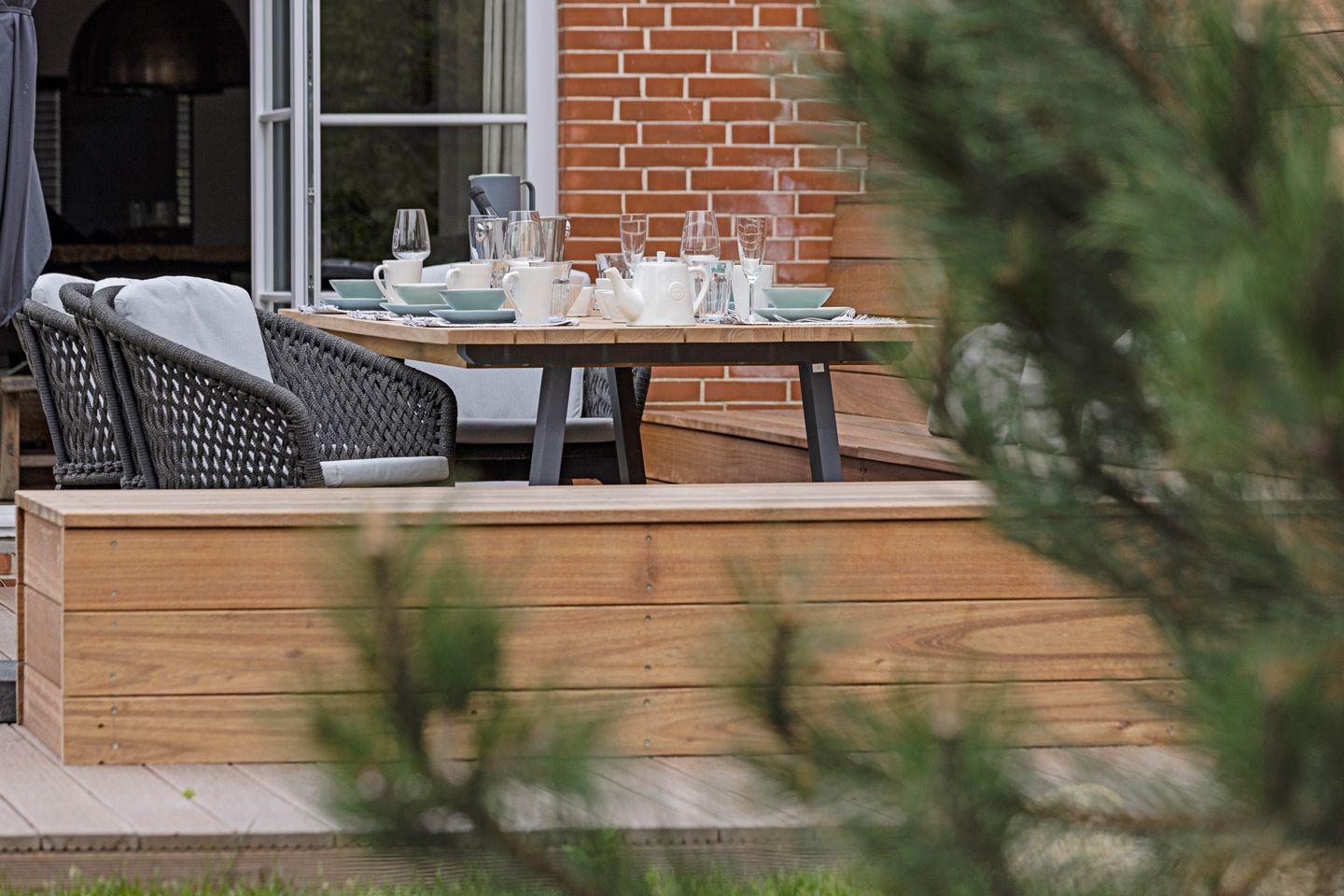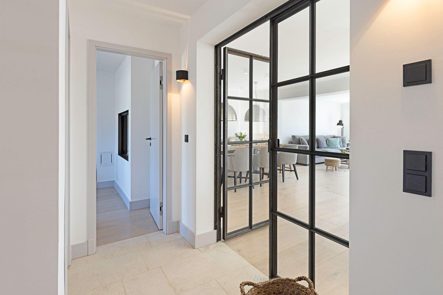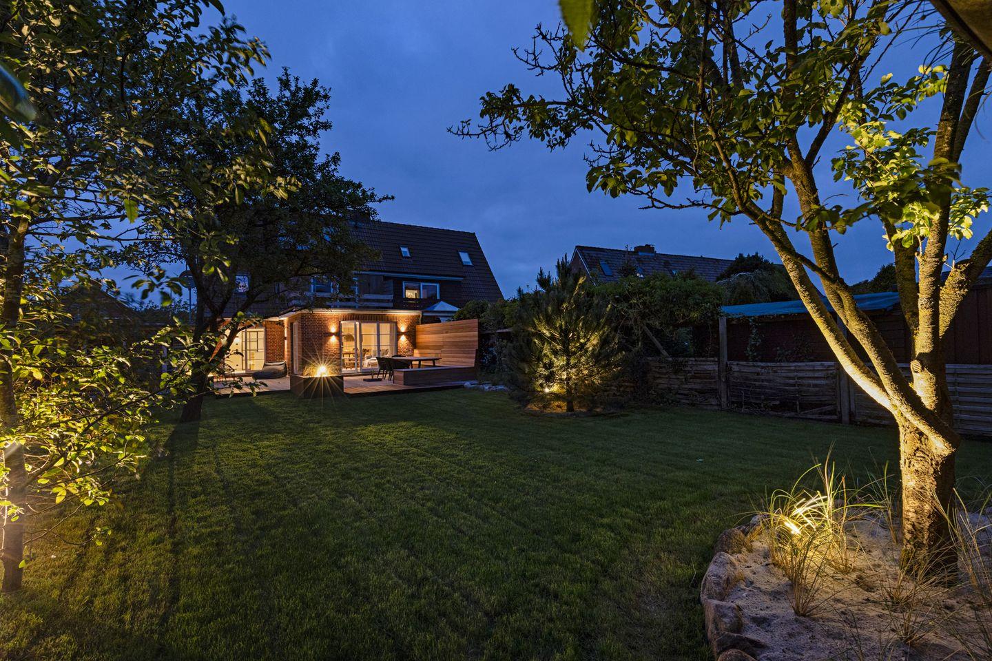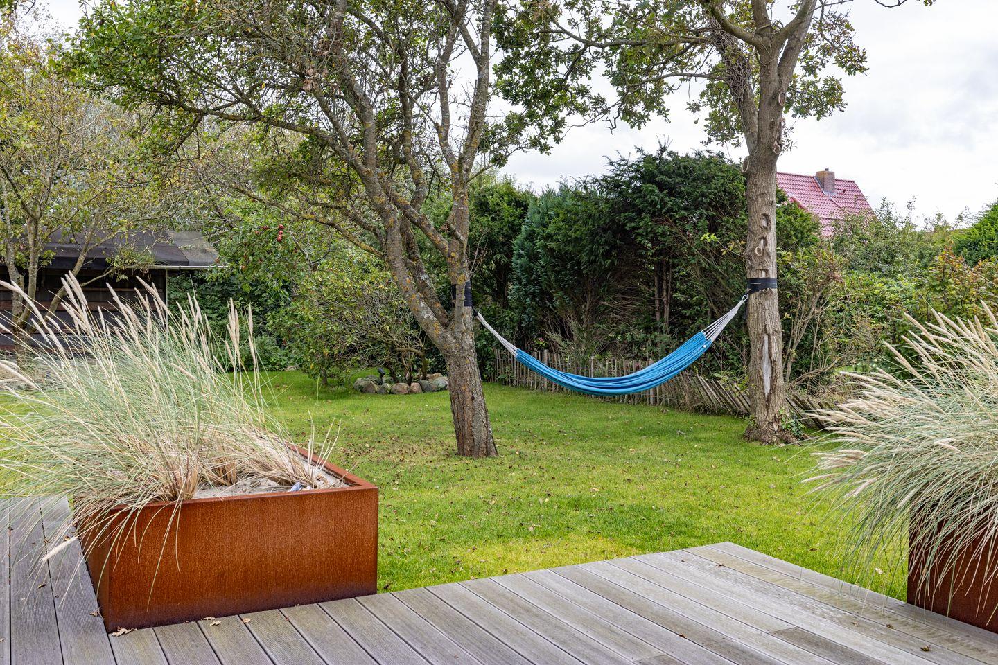 Im Sommer lädt die fast 60?m² große Terrasse mit exklusiven Gartenmöbeln oder der Garten mit Hängematte zum Entspannen ein. Ein separates Kaminzimmer dient als ruhiger Rückzugsort.