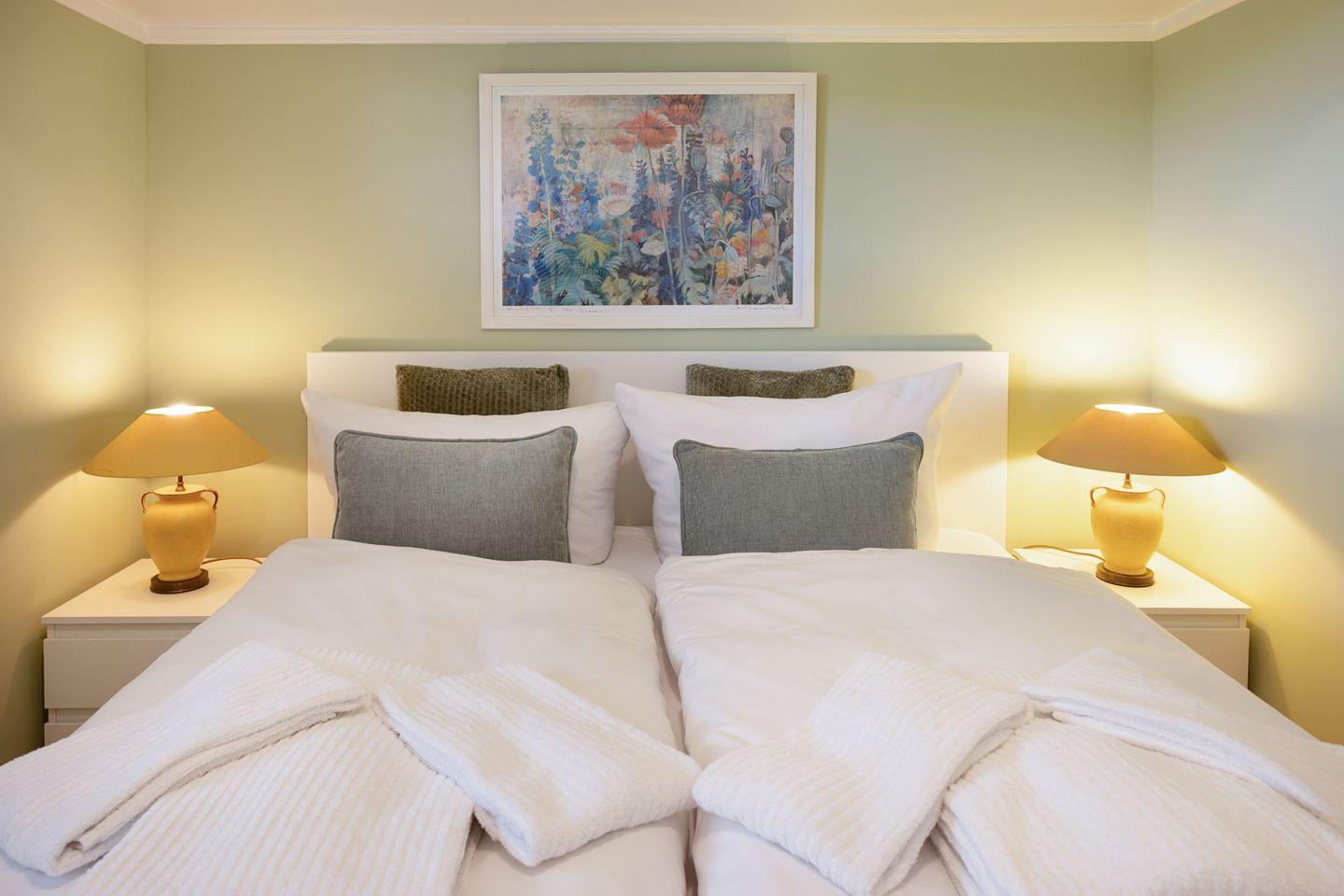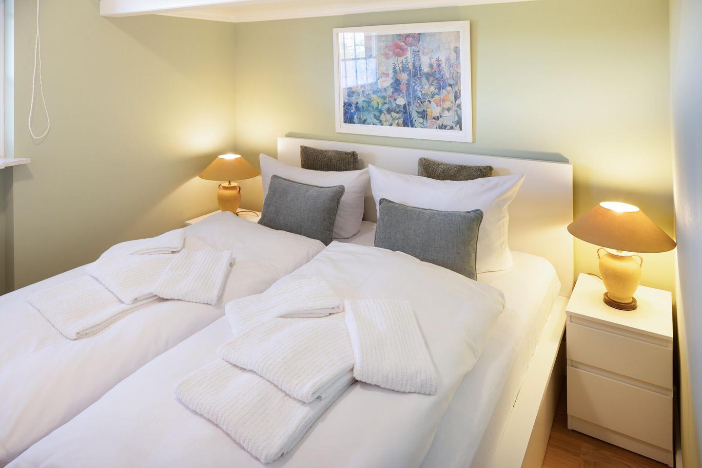 Das Appartement auf 2 Ebenen bietet zwei Schlafzimmer mit Doppelbett sowie eine gemütliche Schlafcouch im Wohnzimmer.