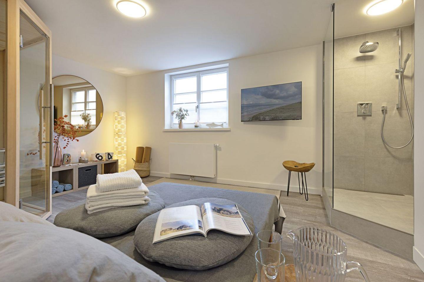 Ihr Ferienhaus verfügt über zwei Bäder (eins im ersten Stock und ein weiteres im Souterrain bei der Sauna).