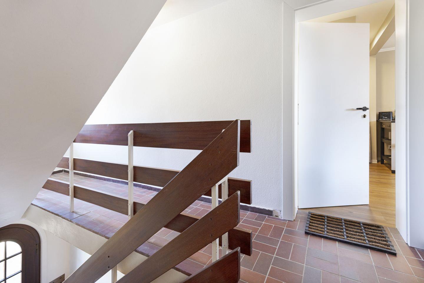 Die Wohnung verfügt über eine eigene Terrasse im Erdgeschoss, die über wenige Stufen vom Garten aus erreichbar ist. Sie ist mit Gartenmöbeln ausgestattet.
