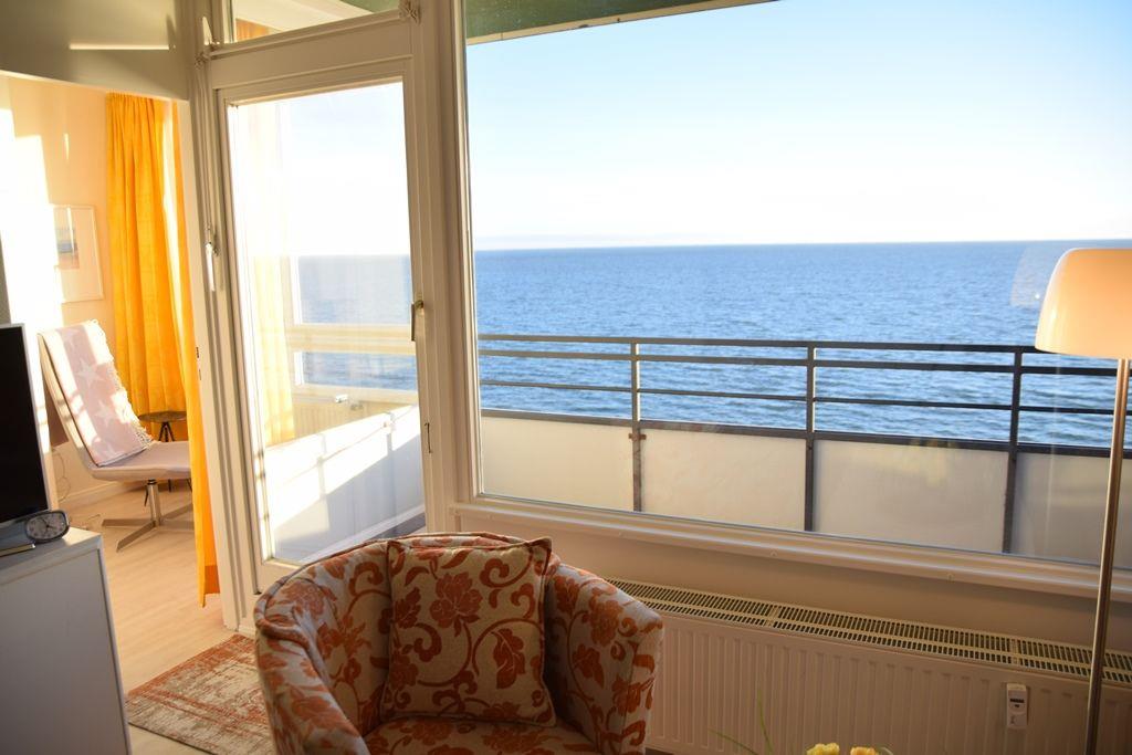 2-Zimmer-Appartement (ca. 45 m²) für 2 Personen in 1A-Lage direkt am Meer. Mit Panoramablick, Ost-Balkon, Garage und WLAN. Heller Wohnbereich mit Doppelbett, voll ausgestattete Küchenzeile. Keine Haustiere erlaubt.