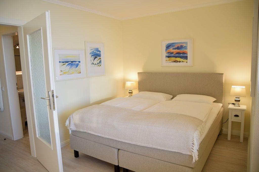 Dieses 2-Zimmer-Appartement (ca. 45 m²) liegt in erstklassiger Lage direkt am Meer und bietet einen traumhaften Panoramablick. Ideal für 2 Personen, bietet das Appartement einen komfortablen Wohn-/Schlafbereich mit einem Doppelbett (180 x 200 cm). Die Küchenzeile ist komplett ausgestattet, sodass Sie sich bequem selbst versorgen können. Das moderne Badezimmer sorgt für zusätzlichen Komfort. Der Ost-Balkon mit Gartentisch und Stühlen lädt zum Verweilen ein und bietet einen herrlichen Blick auf das Meer. Die Wohnung befindet sich in der dritten Etage eines Gebäudes mit Fahrstuhl. Haustiere sind nicht gestattet. Zur Wohnung gehört eine eigene Einzelgarage (Höhe: 1,95 m, Breite: 2,20 m). Der Fahrradabstellraum bietet Platz für Ihre Fahrräder, jedoch ohne Garantie auf einen Stellplatz. In nur 20 Minuten Fußweg erreichen Sie Restaurants und Einkaufsmöglichkeiten am Strand oder durch die malerische Reetdach-Siedlung. WLAN ist im Appartement verfügbar.