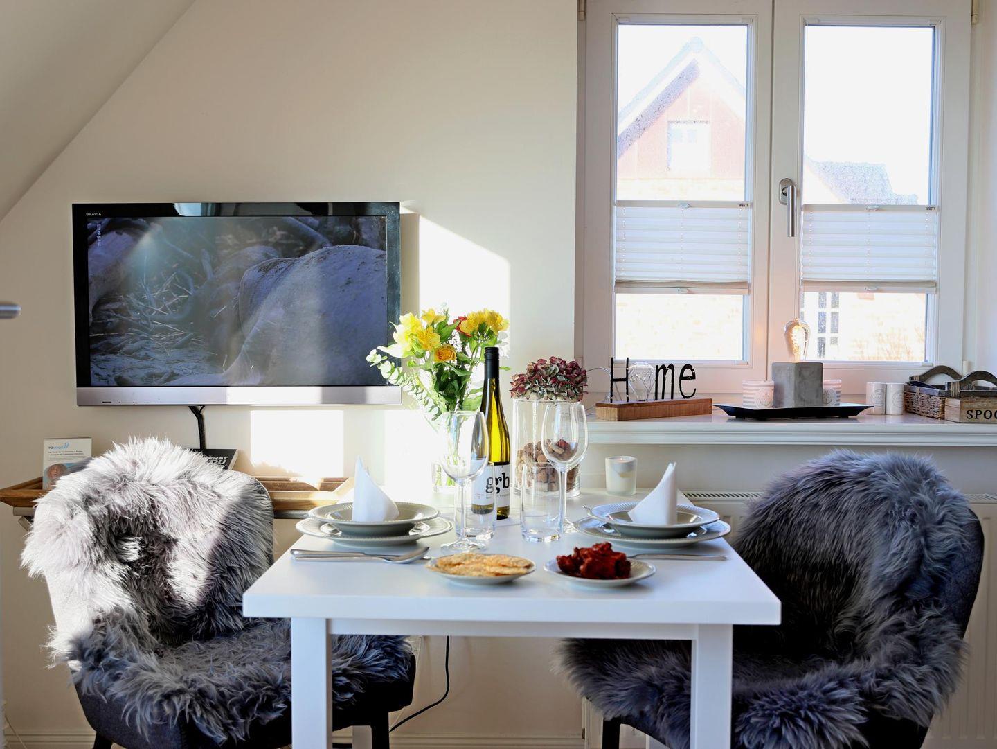 41 m² Dachgeschosswohnung in List für 2 Personen. Hochwertige Ausstattung, Süd-Balkon, 50 m zum Wattenmeer. Waschmaschine und Trockner im Haus. Ruhige, zentrale Lage mit Restaurants, Einkaufsmöglichkeiten und dem Erlebniszentrum Naturgewalten in der Nähe.