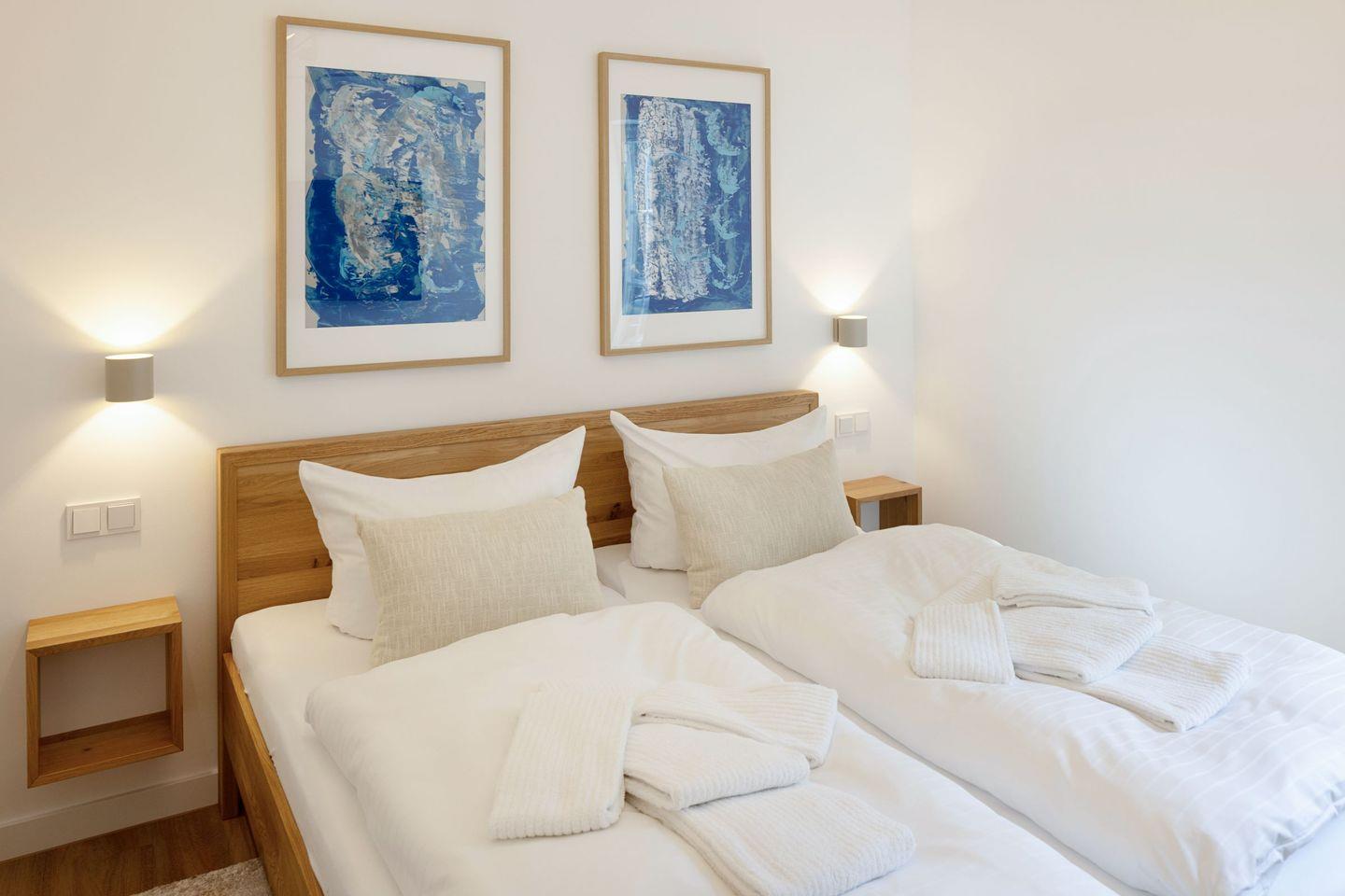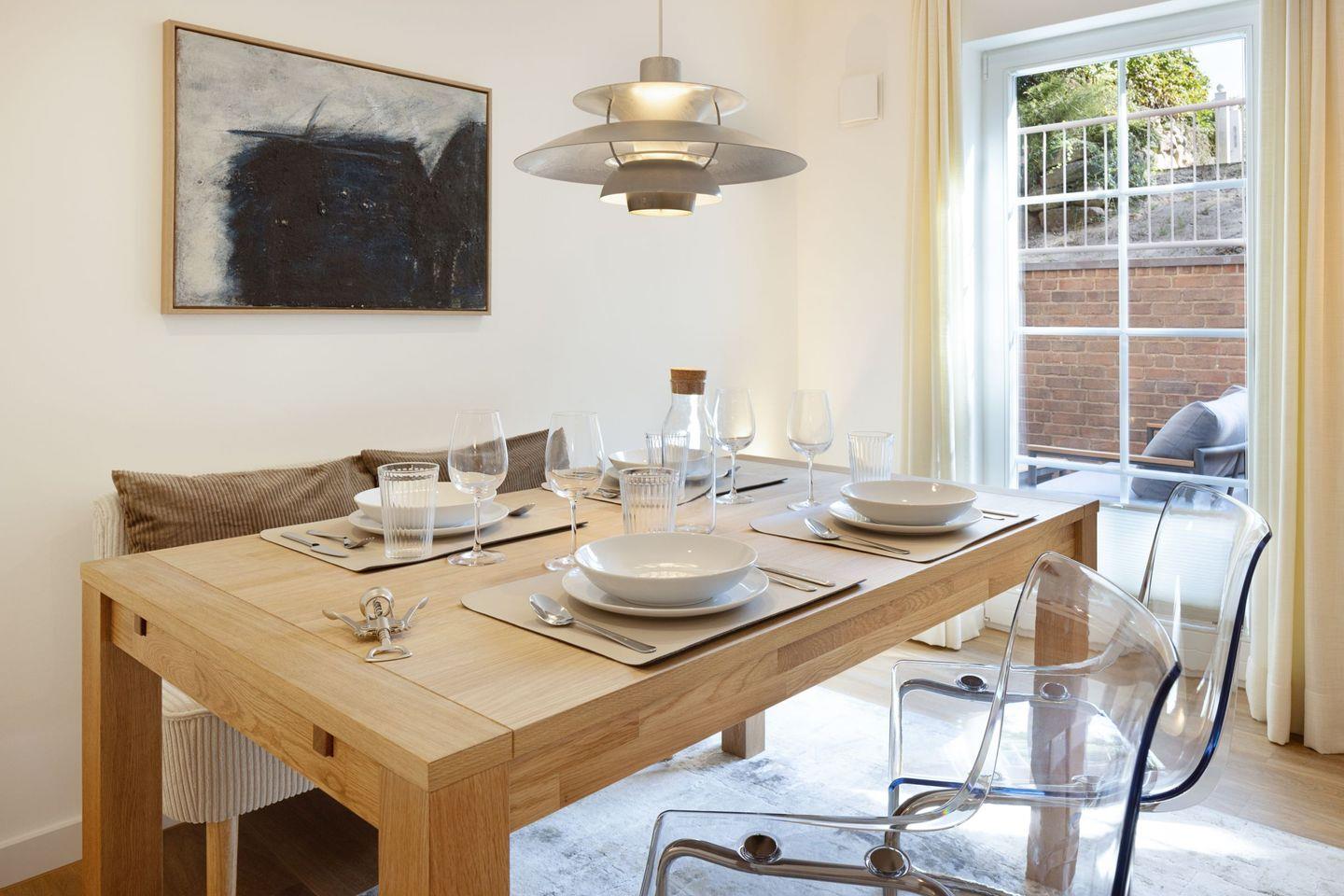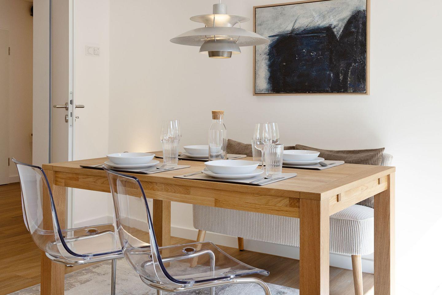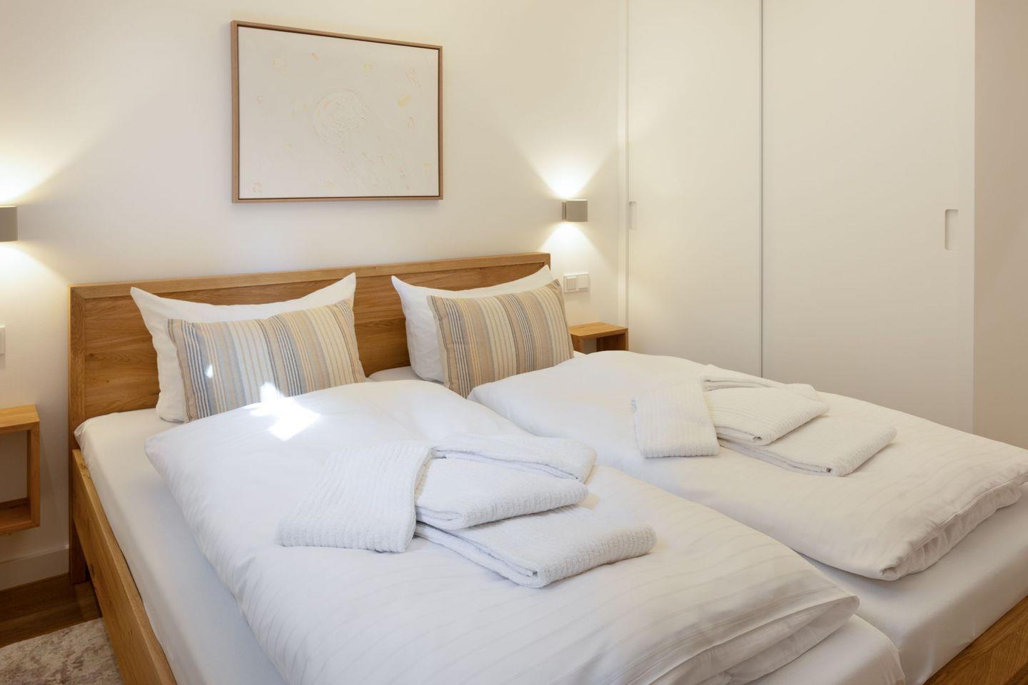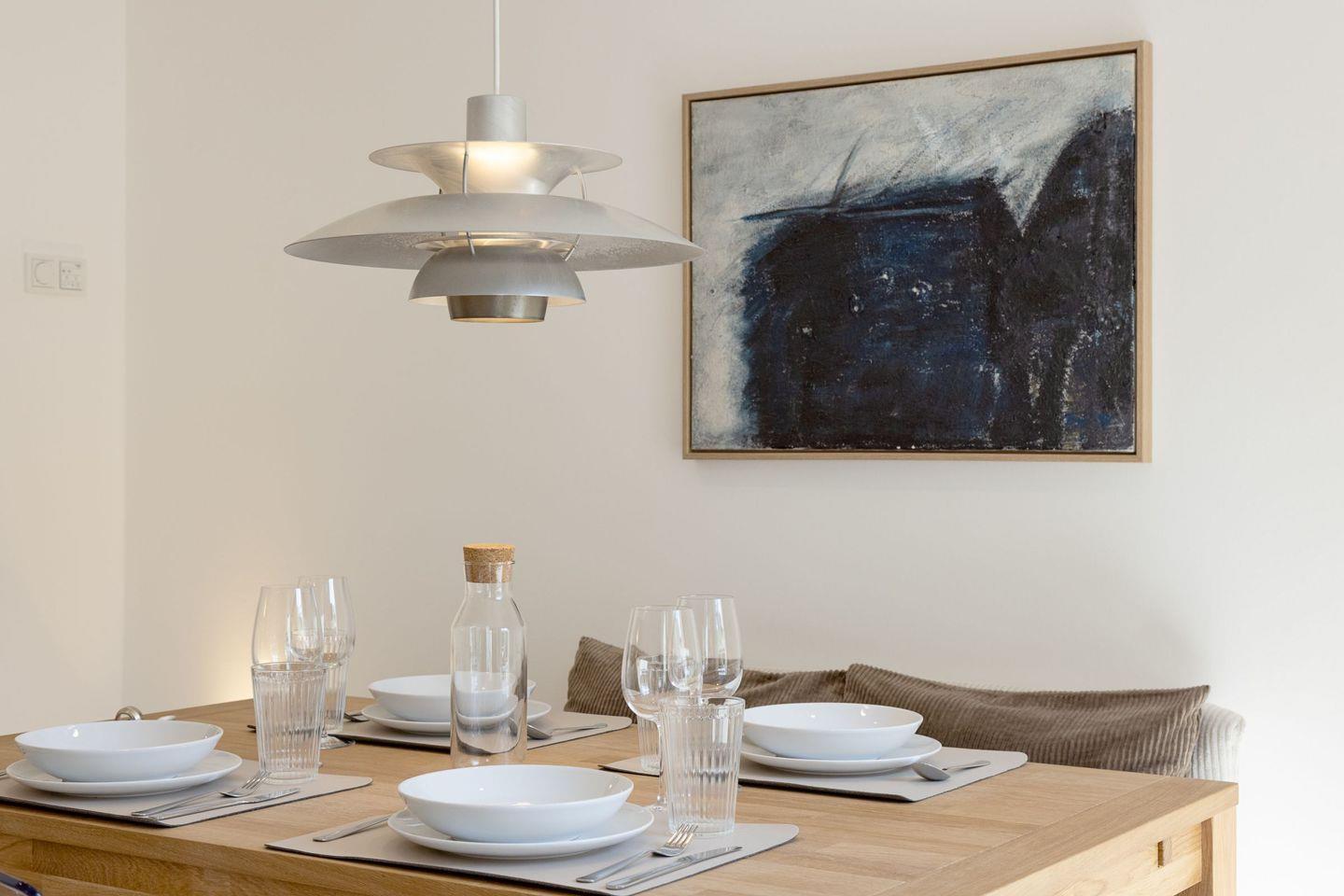 Ein Bad mit Regendusche für den Spa Moment, ein zusätzliches separates WC, schnelles Glasfaserinternet (500 Mbit/s) und Fußbodenheizung bieten höchsten Komfort. Die 15 m² große, windgeschützte Südterrasse ist Ihr Platz für sonnige Frühstücke und laue Sommerabende.