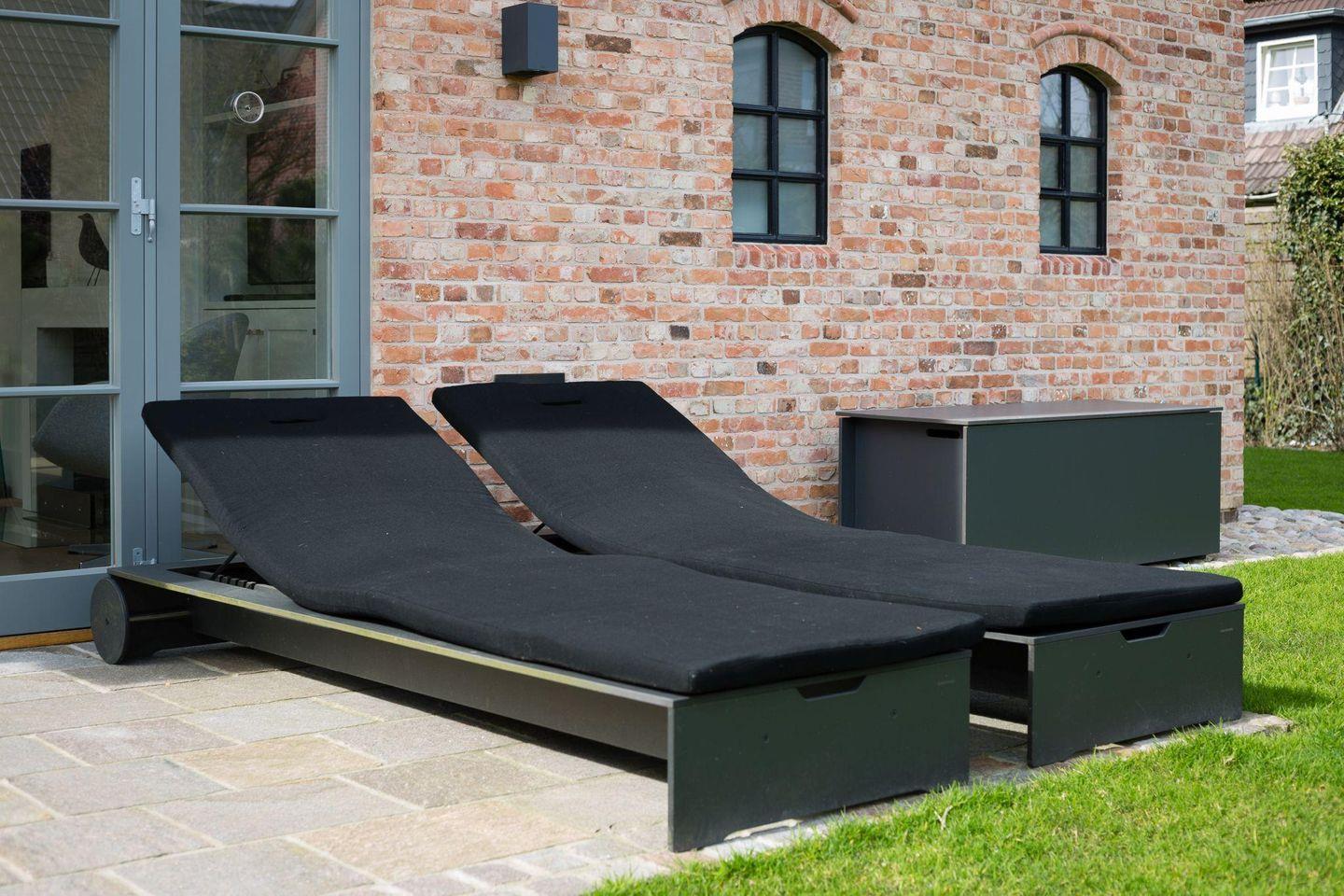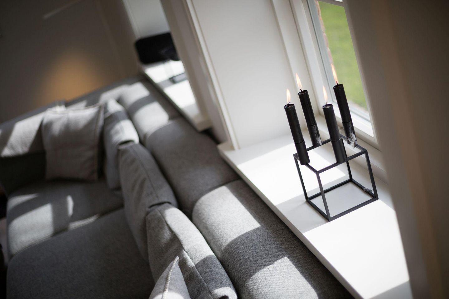 Das großzügige Wohnzimmer besticht durch nordisches Design und hochwertigen Komfort. Ein gemütlicher Kamin sorgt für wohlige Wärme an kühleren Abenden, während die großen Fensterfronten viel Licht hereinlassen und Ihnen direkten Zugang zum weitläufigen Garten und zu den beiden Terrassen bieten. Hier können Sie sich nach einem Tag am Strand entspannen, die Sonne genießen oder den Abend bei einem Glas Wein ausklingen lassen.