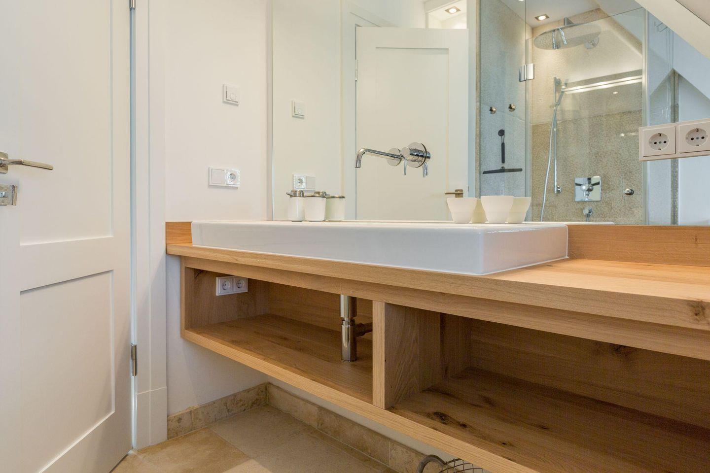 Die beiden modernen Badezimmer sind jeweils mit einer geräumigen Dusche, Fußbodenheizung und Tageslicht ausgestattet. Ein Föhn steht Ihnen ebenfalls zur Verfügung. Diese Badezimmer bieten Ihnen alles, was Sie für einen erholsamen Start in den Tag oder nach einem Strandtag zur Erfrischung benötigen.
