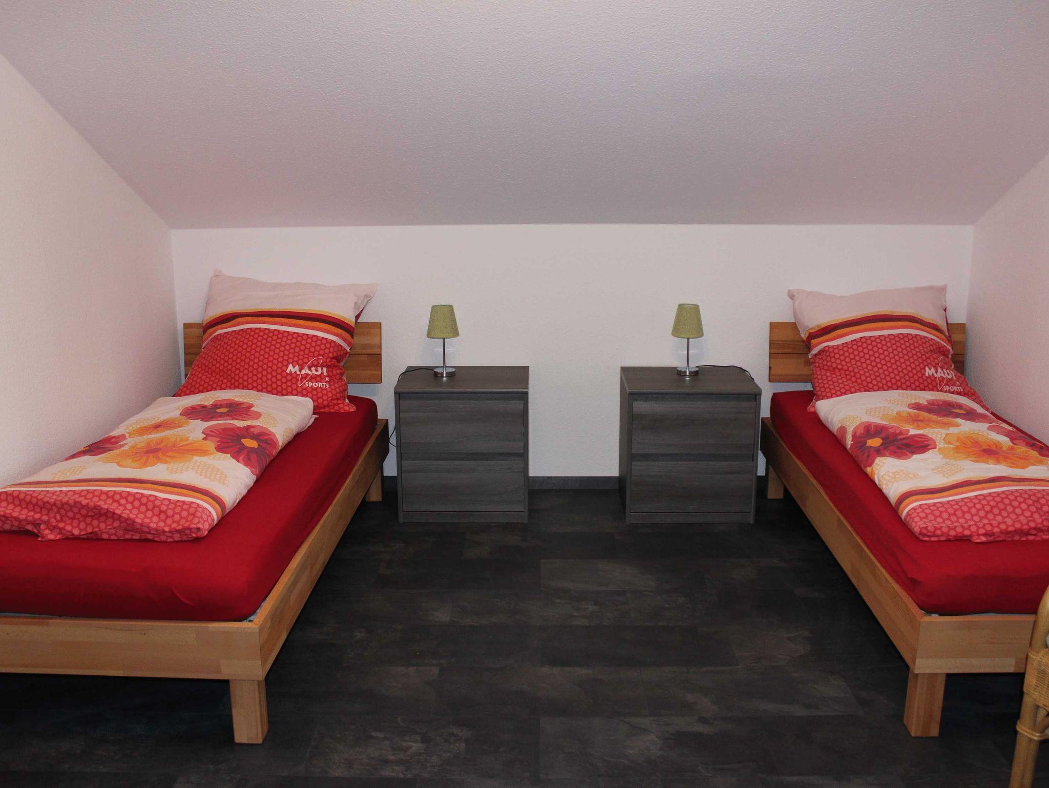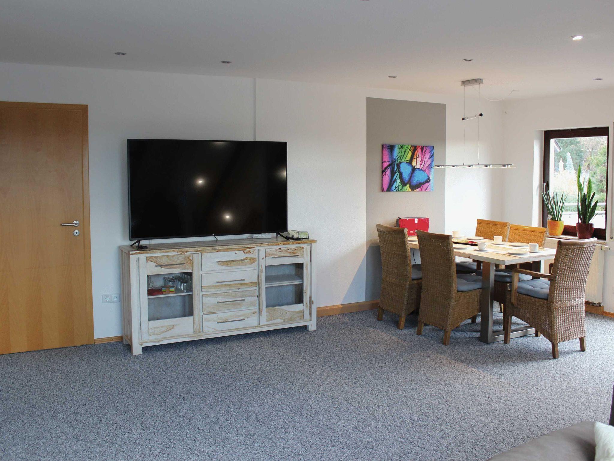 Die Wohnung hat 2 Schlafzimmer mit jeweils 2 Einzelbetten die man je nach Bedarf zusammenstellen kann. Im großen Wohnzimmer sitzen Sie gemütlich auf 2 Sofas mit Couchtisch. Für den guten Durchblick sorgt hier der 65 TV-Flachbild Fernseher. Am Esstisch können bequem 4 Personen sitzen.Die offene Küche hat alles was man in seinem Urlaub braucht: Herd, Backofen, Kühlschrank mit Gefrierfach, Mikrowelle, Kaffeemaschine, Wasserkocher, Toaster. Das Bad ist mit Dusche, WC, Waschbecken und Föhn ausgestattet. Die Wohnung ist mit Teppich ausgelegt, in Schlafzimmer 2 liegt ein Laminatboden.