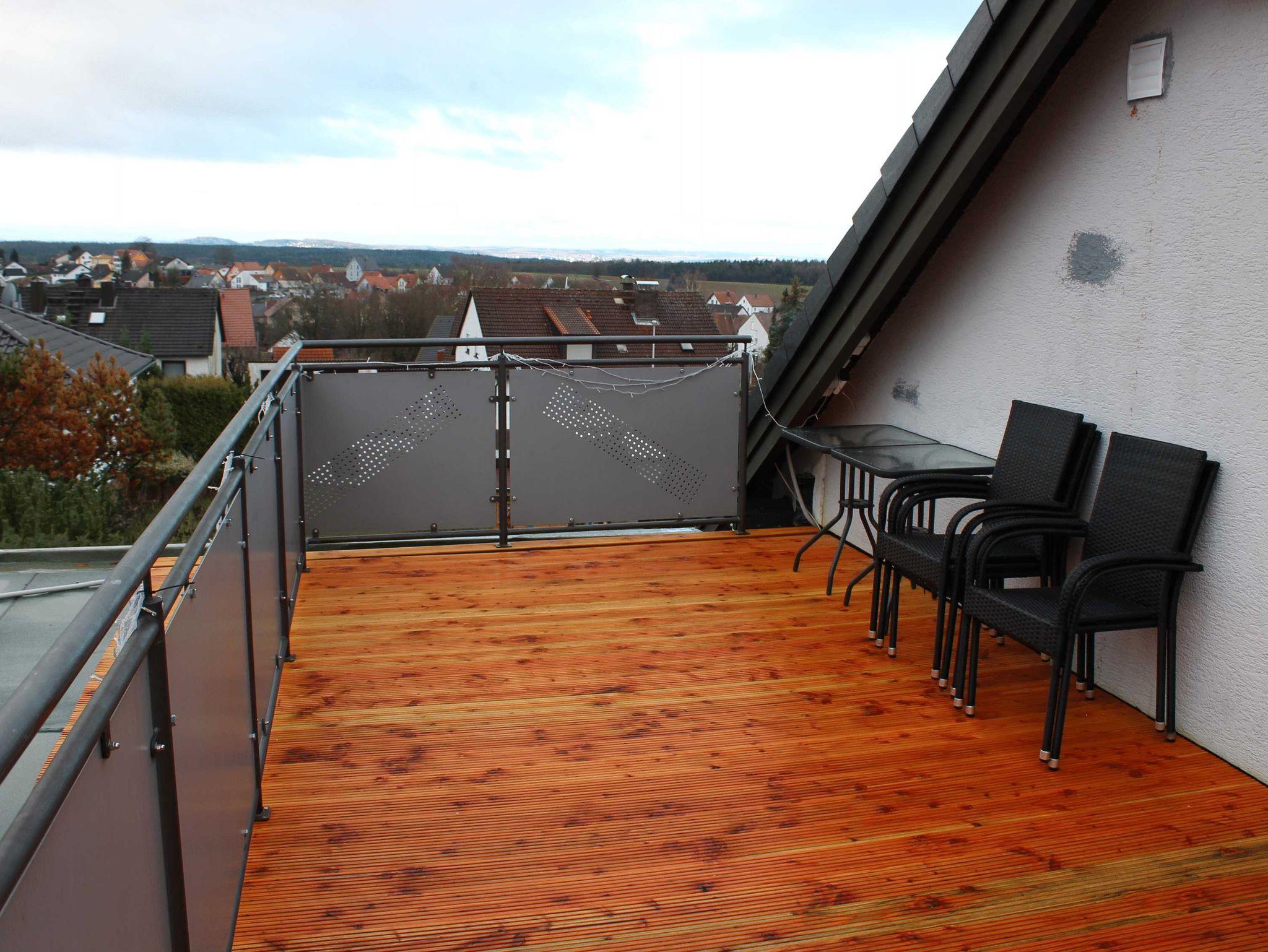 Besonderheit: Auf der fast 25qm großen Sonnenterrasse haben Sie einen sagenhaften Panoramablick in Richtung Süd/West, Altenburg, Bamberg und Hallstadt. Für den Schatten sorgt hier eine elektrische Markise.