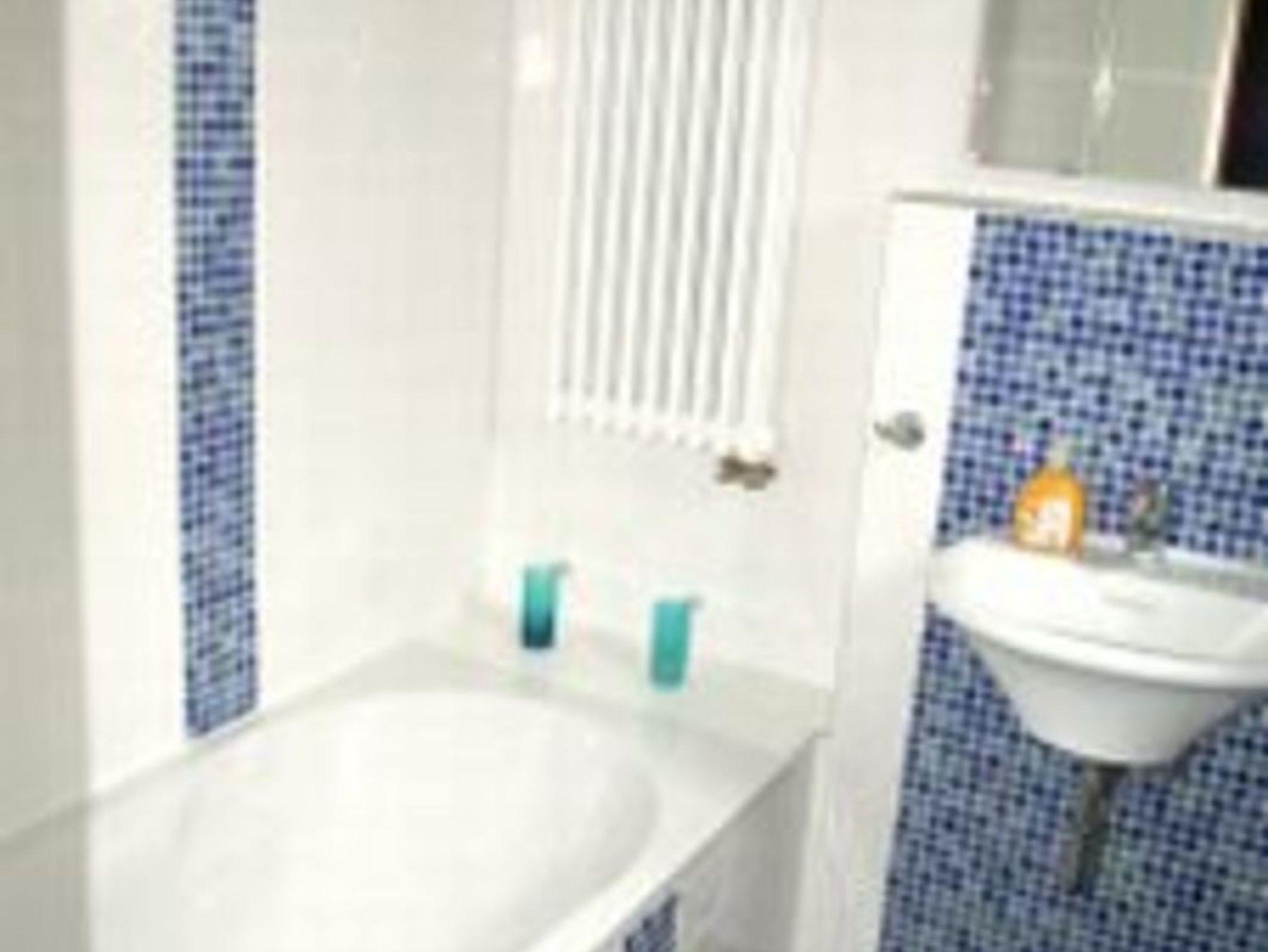 Sie sehnen sich nach Entspannung? Dann genießen Sie ein wohltuendes Vollbad in der gemütlichen Badewanne. Für die Anhänger der schnellen Wäsche steht eine Aufsatzwand zur Verfügung, die im Handumdrehen aus der Wanne eine Großraumdusche zaubert. Die ansprechende Fliesengestaltung in weiß und Blautönen erzeugt ein maritimes Flair, das Sie bereits bei der Morgentoilette erfrischen wird. Tageslicht versteht sich in diesem Bad von selbst.