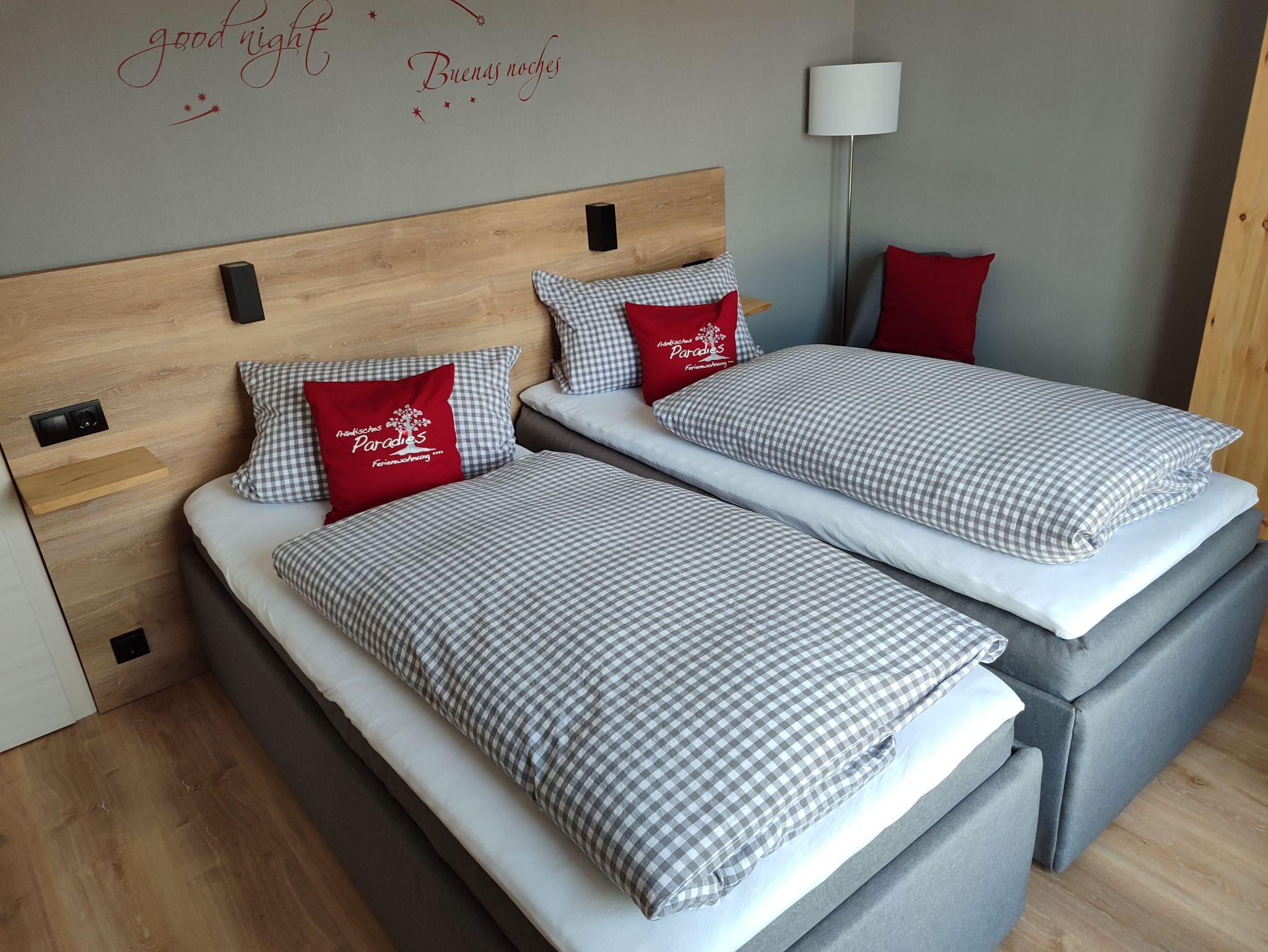 Zudem stellen wir unseren Gästen separate Schlafzimmer mit bequemen Betten, TV und Arbeitsplatz zur Verfügung: Beide Schlafzimmer sind mit je zwei Einzelbetten ausgestattet, die zum Doppelbett zusammengeschoben werden können.. Ein Schlafzimmer mit Zugang zum Balkon,