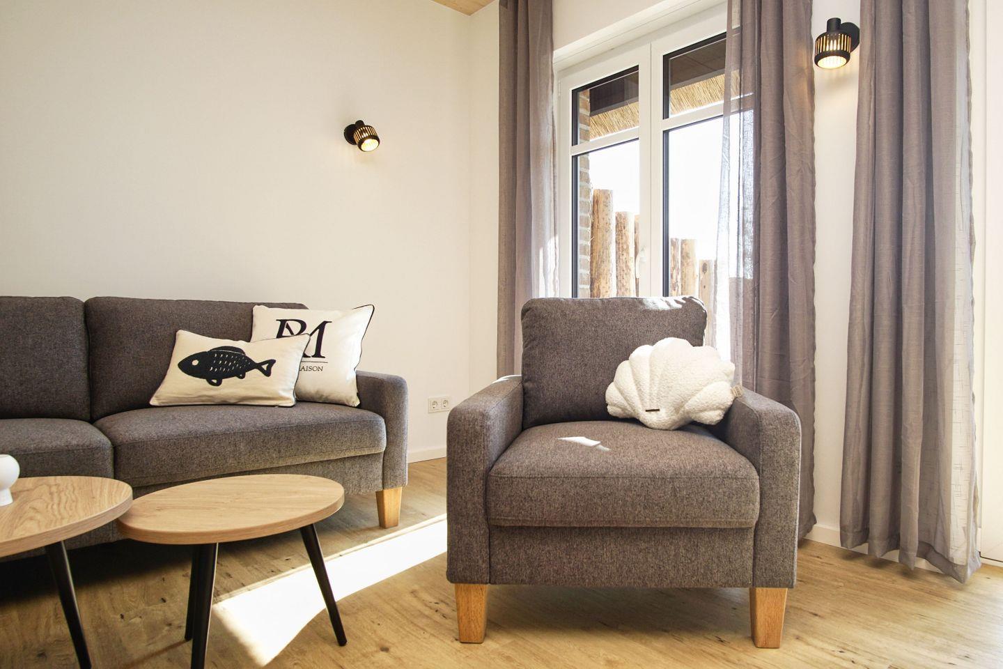 Die Haushälfte Jolu in Lobbe auf Rügen bietet Ihnen ein hochwertiges Urlaubserlebnis in strandnaher Lage. Das neu errichtete (2025/2026) reetgedeckte Doppelhaus überzeugt mit moderner Ausstattung wie Kamin und eigener Sauna und schafft so beste Voraussetzungen für entspannte Tage an der Ostsee – nur rund 250 Meter vom feinsandigen Strand entfernt. Ein stilvoller Rückzugsort, der Komfort und Erholung harmonisch verbindet.