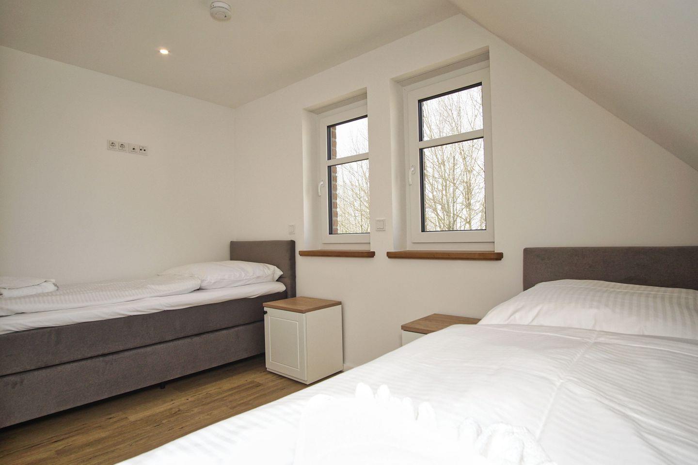 SCHLAFEN // im ersten OG zwei Schlafzimmer mit jeweils einem Doppelbett (ein Schlafzimmer mit zusätzlichem Flachbild-TV), ein Schlafzimmer mit zwei Einzelbetten, im DG offenes Schlafzimmer mit Doppelbett und Panoramafenster im Giebel ++