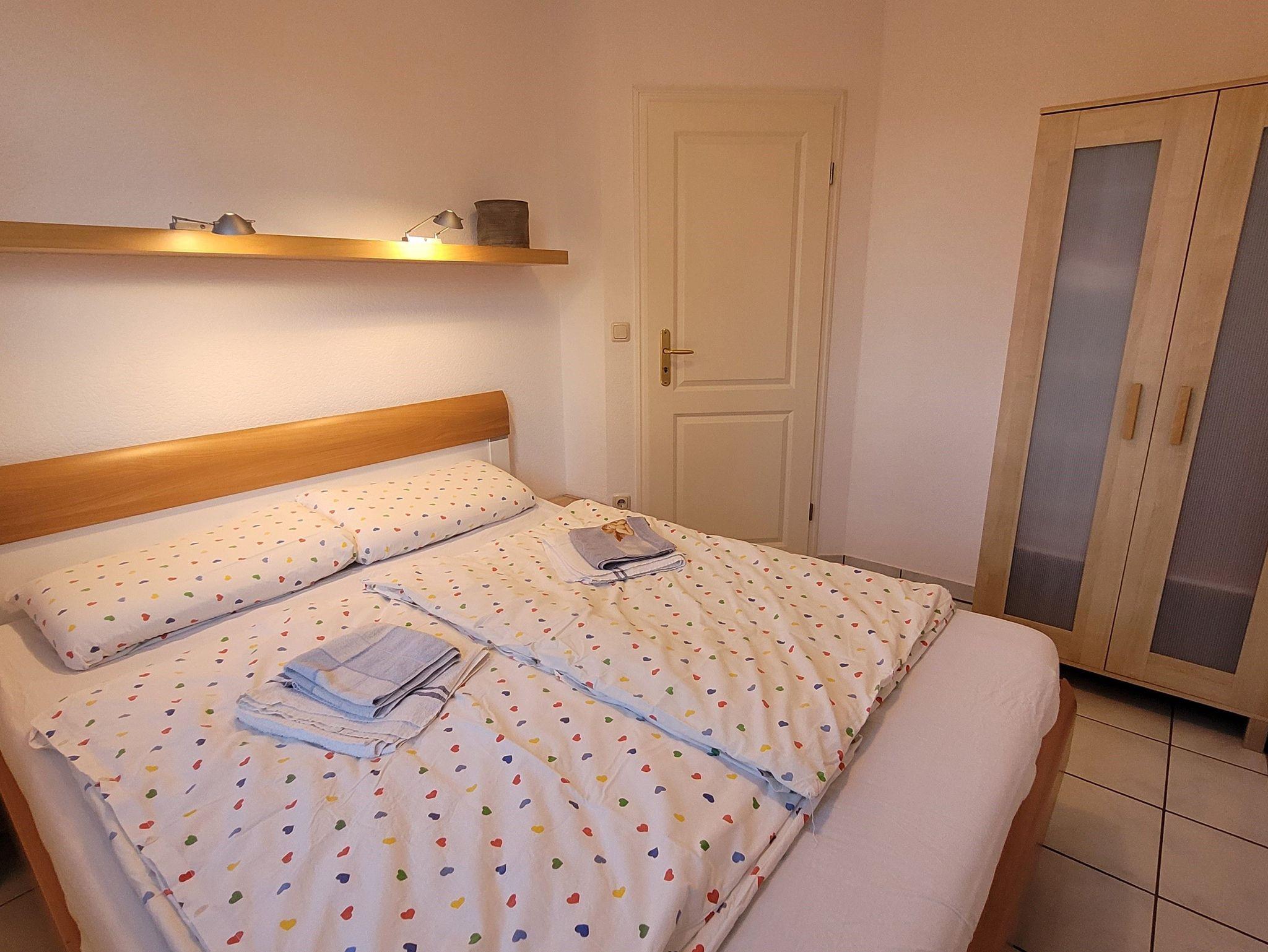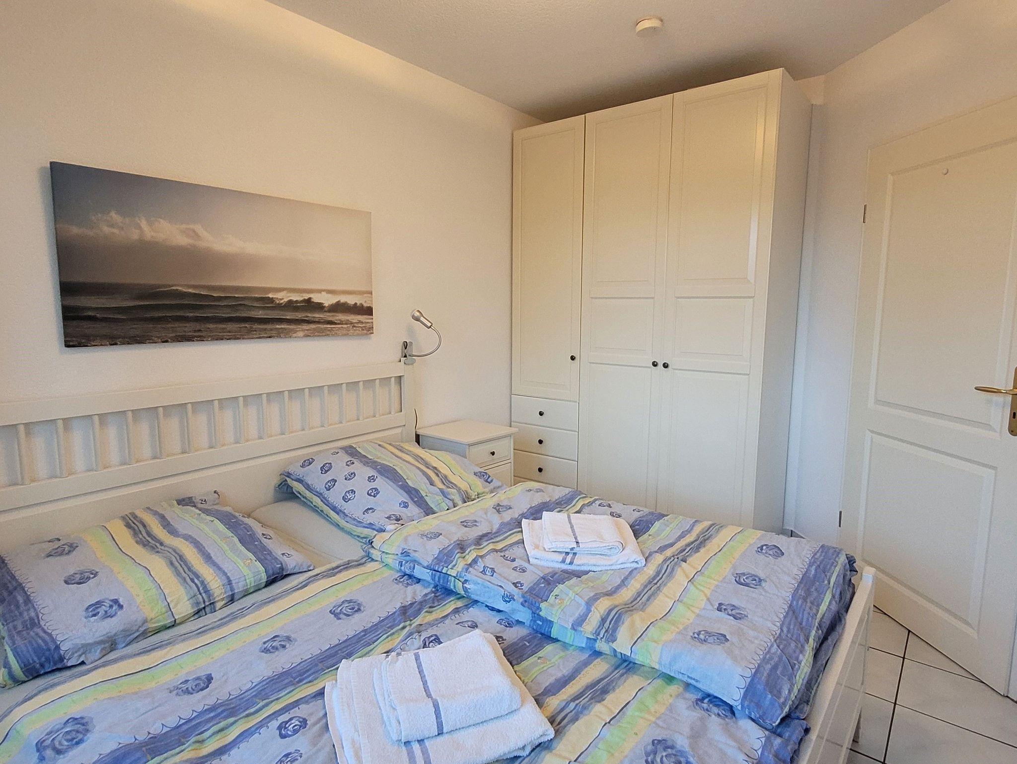 Zwei schöne Schlafzimmer mit je einem Doppelbett und allergikerfreundlichen Matratzen sorgen für einen ruhigen und entspannten Schlaf. In den großen Kleiderschränken können Sie auch umfangreichere Urlaubsgarderobe unterbringen. Das Badezimmer ist mit Dusche/WC, Haartrockner und Waschmaschine ausgestattet.