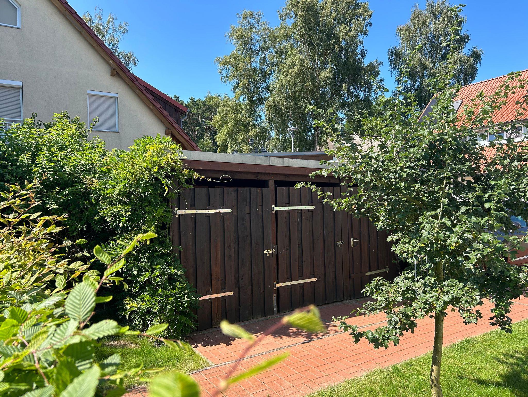 Zu jeder Wohnung gehört ein PkW-Stellplatz, welcher sich unmittelbar auf dem Grundstück befindet. Im Garten steht ein gemütlicher, von Schilf umsäumter, Grillplatz mit Grillkamin und einer geräumigen Tischgruppe allen Gästen zur gemeinschaftlichen Nutzung zur Verfügung.