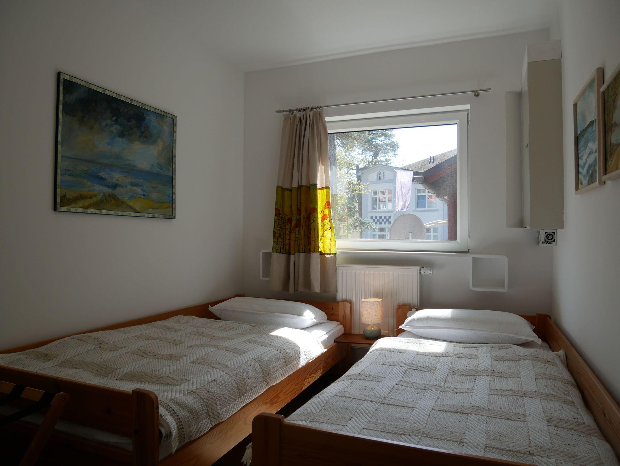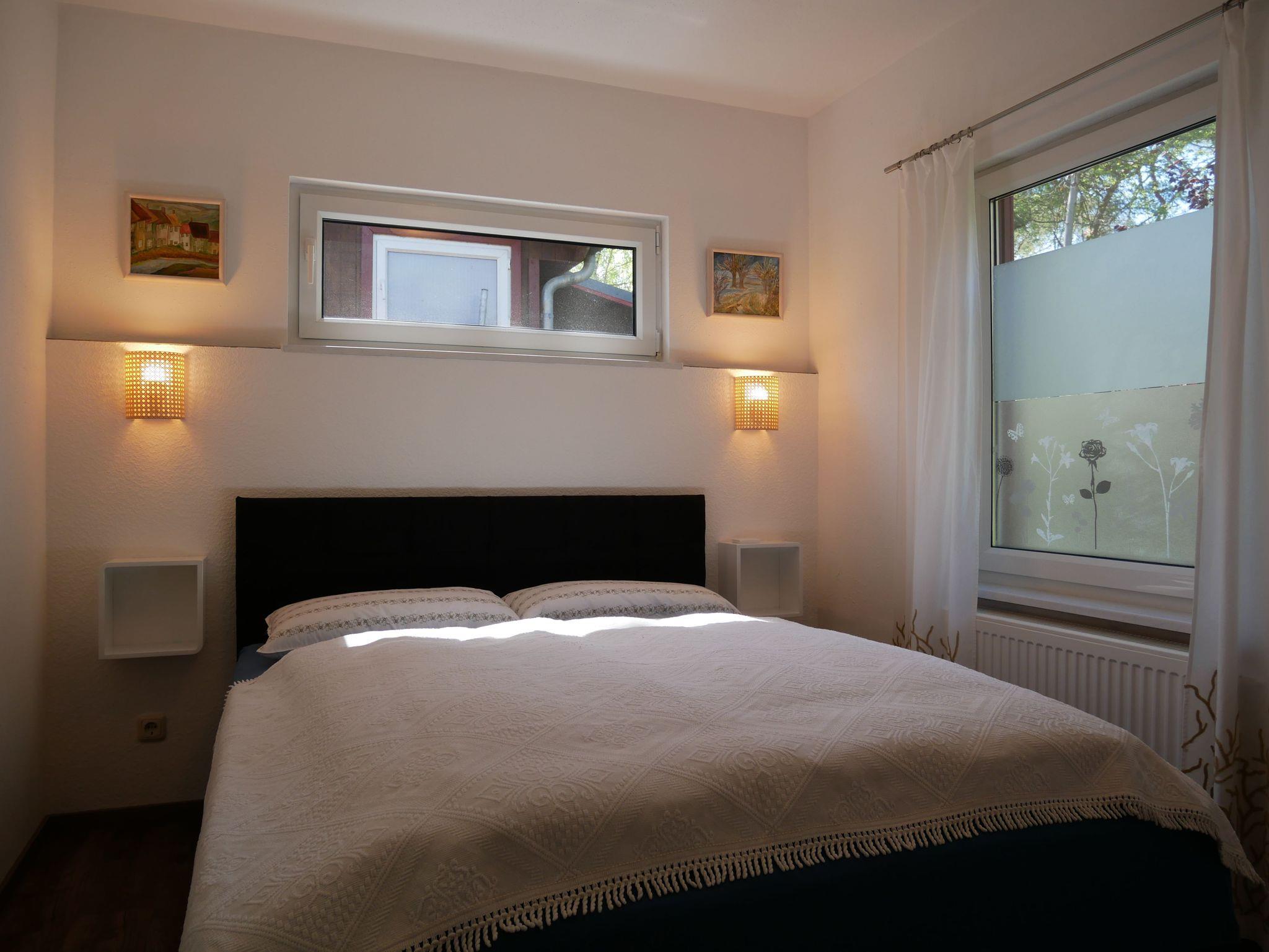 Das Ferienhaus verfügt über zwei Schlafzimmer: Das erste mit zwei Einzelbetten (90x200 cm) inklusive Fächern für Kleidung, das zweite mit einem Doppelbett (160x200 cm) und Kleiderfächern. In jedem Raum sind Insektengitter installiert, um ungestörten Schlaf zu gewährleisten. Bettwäsche und Handtücher können optional dazu gebucht werden.