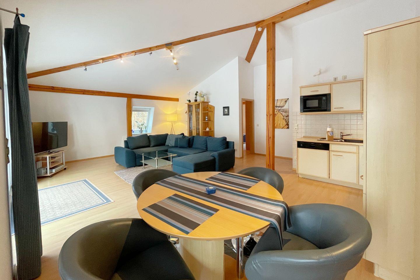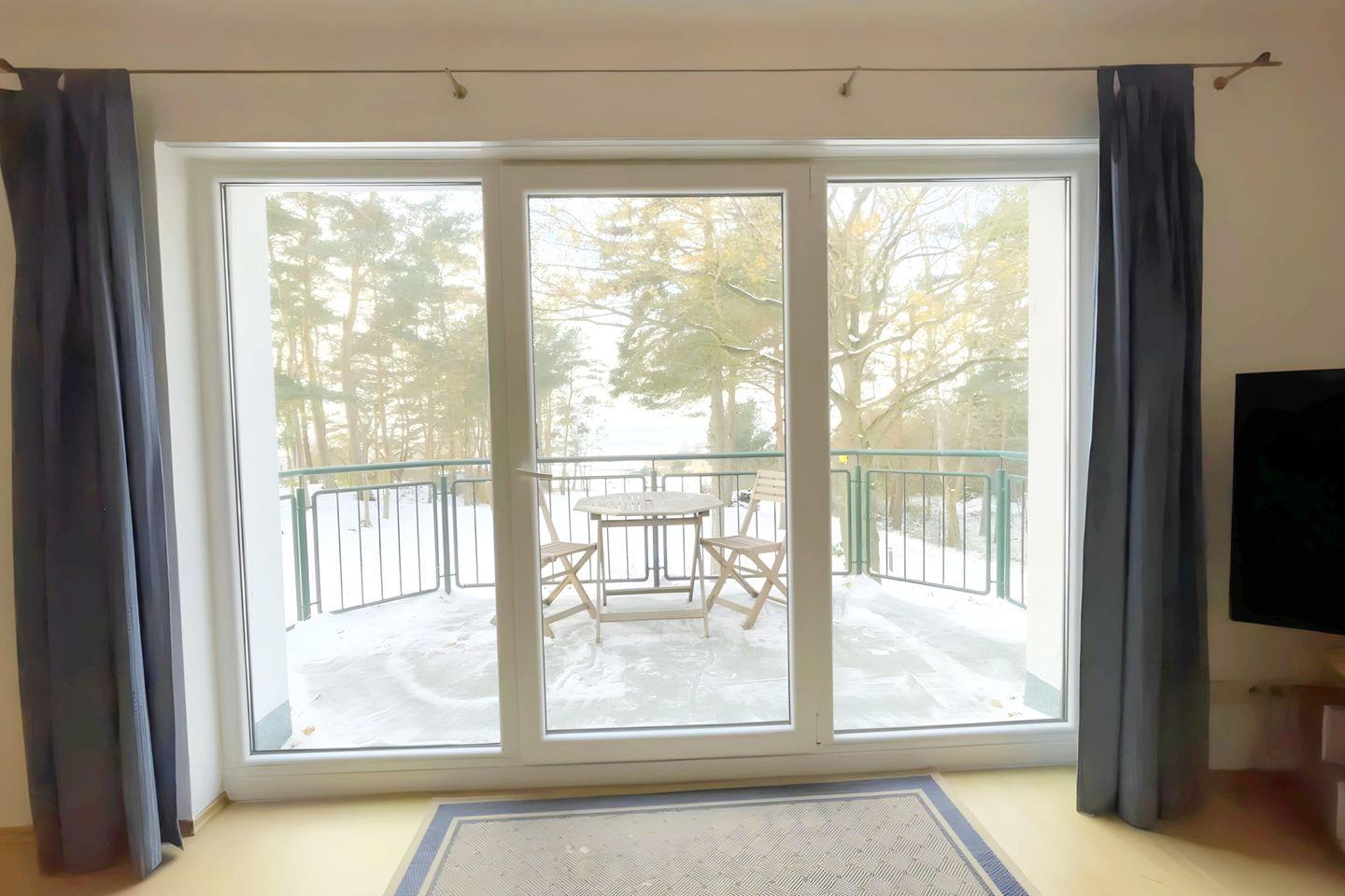 Die offene Küche ist komplett ausgestattet mit hochwertigen Küchenutensilien, einem Cerankochfeld, Backofen, Mikrowelle, Kühlschrank mit Gefrierfach, Geschirrspüler und einer Kaffeemaschine – hier können Sie im Handumdrehen köstliche Gerichte zubereiten. Von der Küche aus gelangen Sie direkt auf den Balkon, auf dem Sie bei einem Glas Wein den herrlichen Blick auf die umliegende Natur und das Achterwasser genießen können.