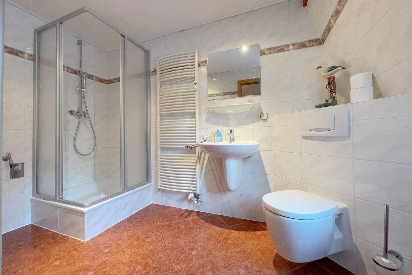 Die Wohnung umfasst ein Schlafzimmer und ein modernes Badezimmer mit Dusche – ideal für entspannte Stunden nach einem aktiven Tag am Strand. Der offen gestaltete Wohnbereich mit gemütlicher Sofaecke und Essbereich lädt zu geselligen Abenden ein. Für die Unterhaltung sorgt eine moderne HiFi-Anlage sowie zwei digitale TV-Geräte für gemütliche Filmabende.