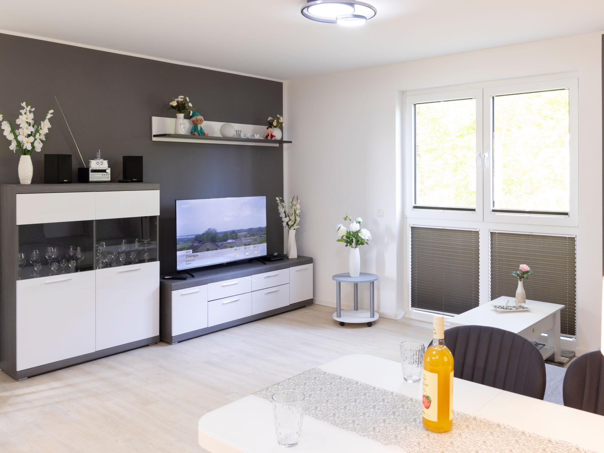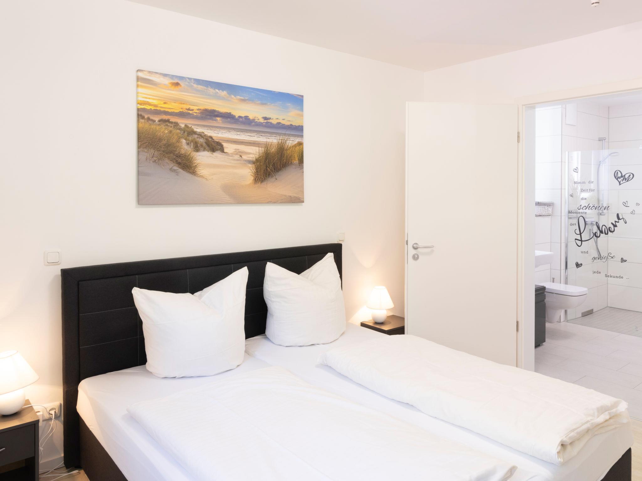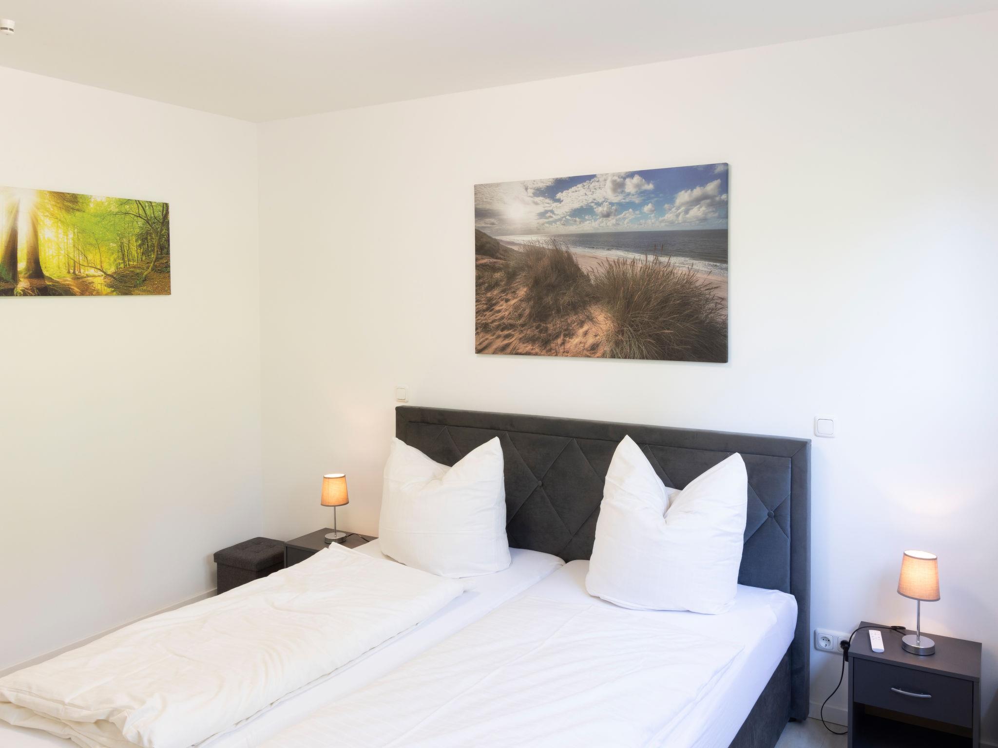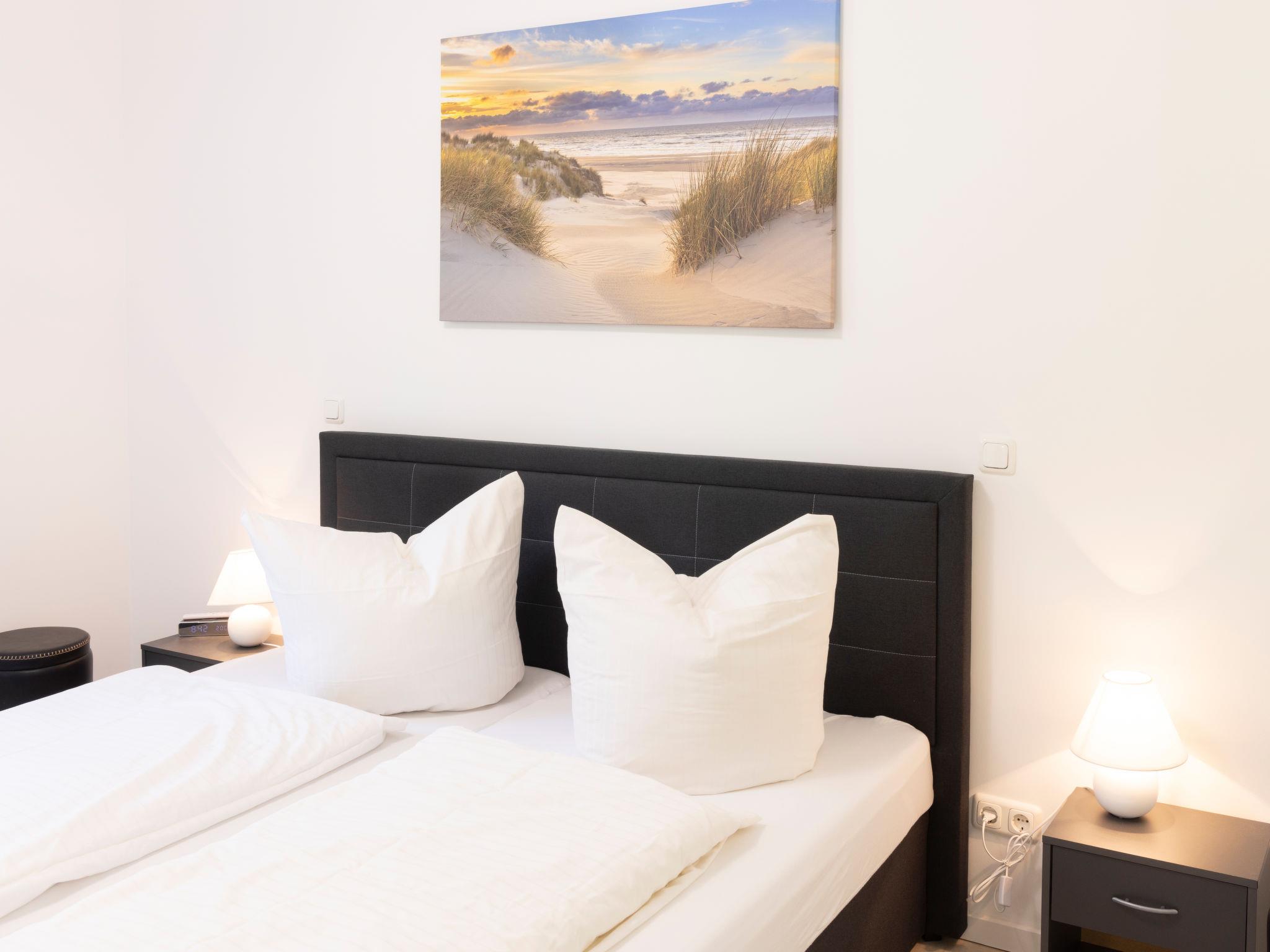 "Sandmann", 3-room apartment 82 m2, on the ground floor. Modern and tasteful furnishings: living/dining room with dining table and cable TV (flat screen). Exit to the terrace. 1 room with 1 double bed (180 cm, length 200 cm), shower/WC and satellite TV (flat screen), electric shutters. 1 room with 1 double bed (180 cm, length 200 cm), electric shutters. Open kitchen (oven, dishwasher, 4 ceramic glass hob hotplates, toaster, kettle, microwave, freezer, electric coffee machine). Shower/WC. Underfloor heating. Terrace partly roofed. Terrace furniture. Facilities: children's high chair, baby cot. Internet (WiFi, free). Garage (1 car), height 190 cm. Please note: suitable for families. Non-smokers only. Maximum 1 small pet/ dog allowed. Smoke alarm. Small dogs up to 30cm shoulder height.