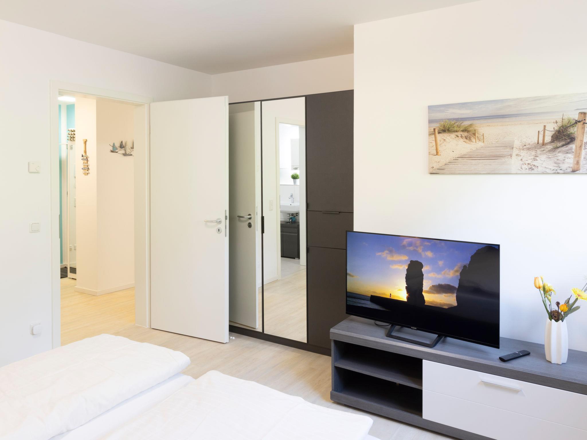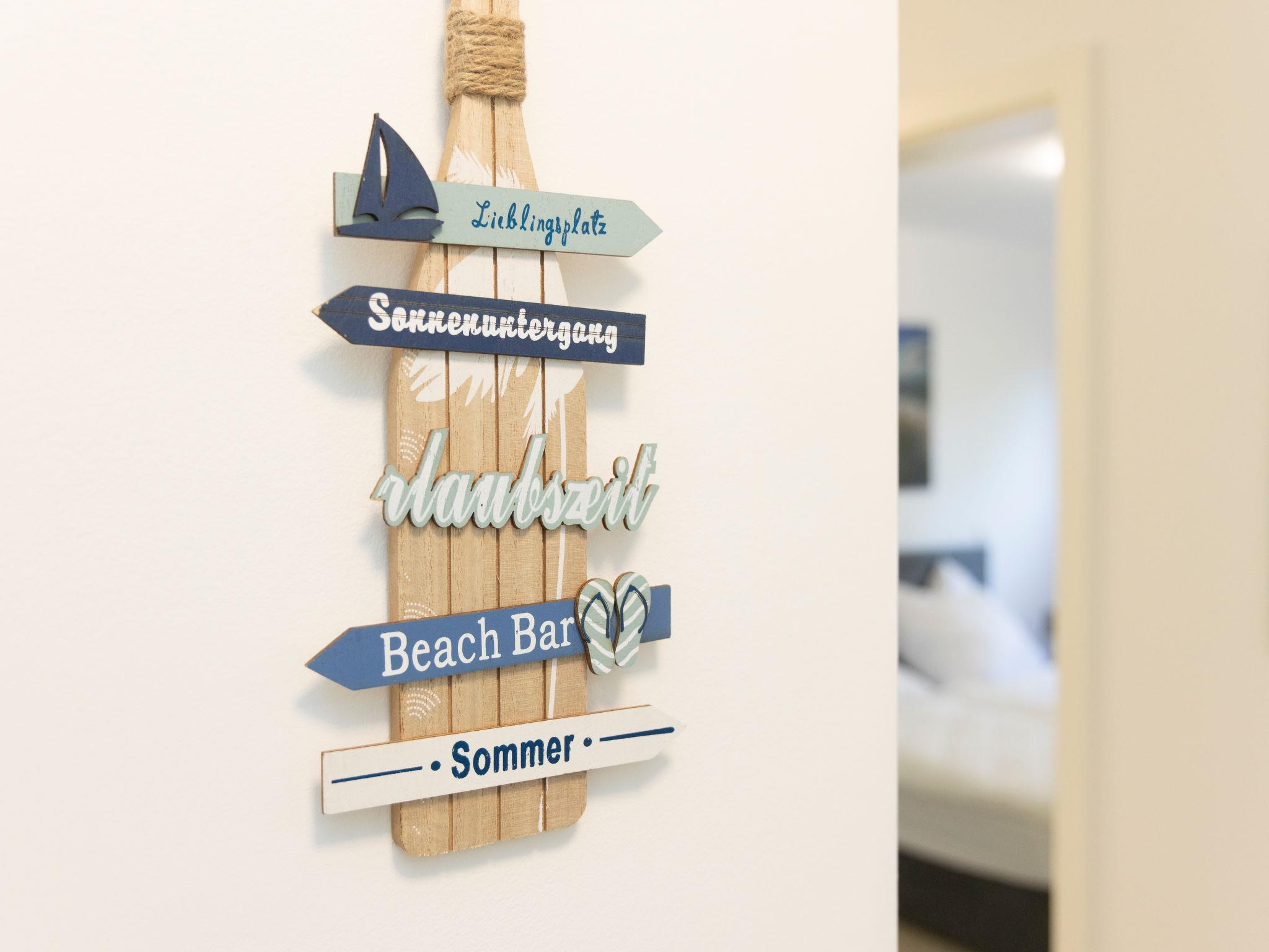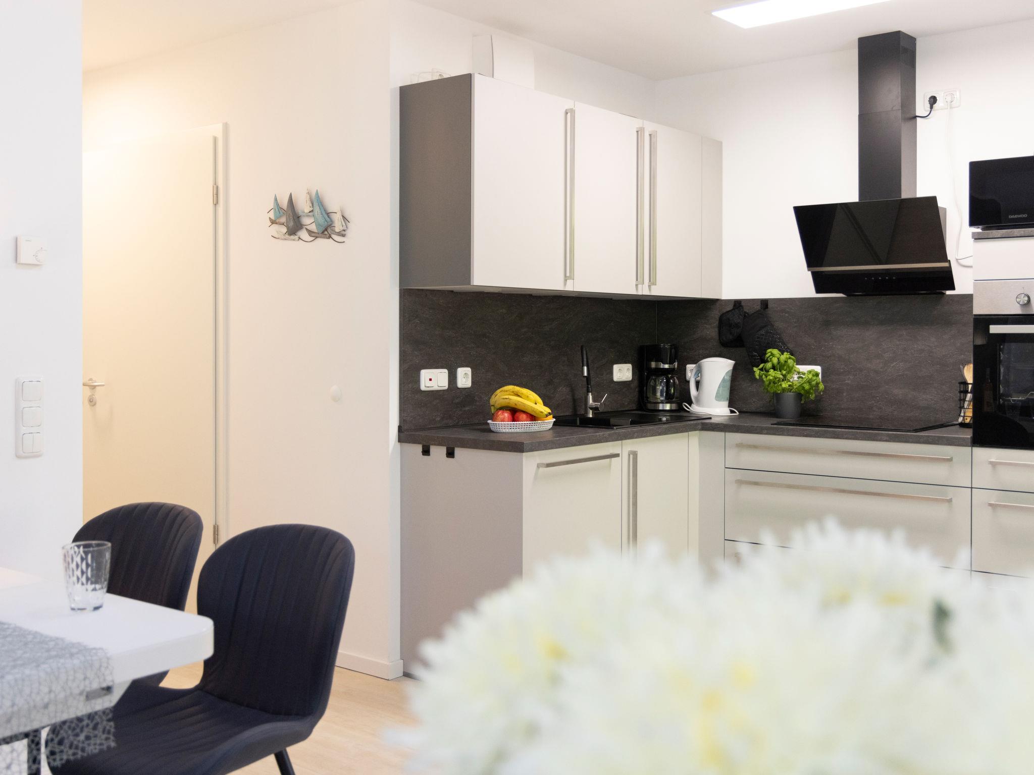 "Sandmann", 3-room apartment 82 m2, on the ground floor. Modern and tasteful furnishings: living/dining room with dining table and cable TV (flat screen). Exit to the terrace. 1 room with 1 double bed (180 cm, length 200 cm), shower/WC and satellite TV (flat screen), electric shutters. 1 room with 1 double bed (180 cm, length 200 cm), electric shutters. Open kitchen (oven, dishwasher, 4 ceramic glass hob hotplates, toaster, kettle, microwave, freezer, electric coffee machine). Shower/WC. Underfloor heating. Terrace partly roofed. Terrace furniture. Facilities: children's high chair, baby cot. Internet (WiFi, free). Garage (1 car), height 190 cm. Please note: suitable for families. Non-smokers only. Maximum 1 small pet/ dog allowed. Smoke alarm. Small dogs up to 30cm shoulder height.